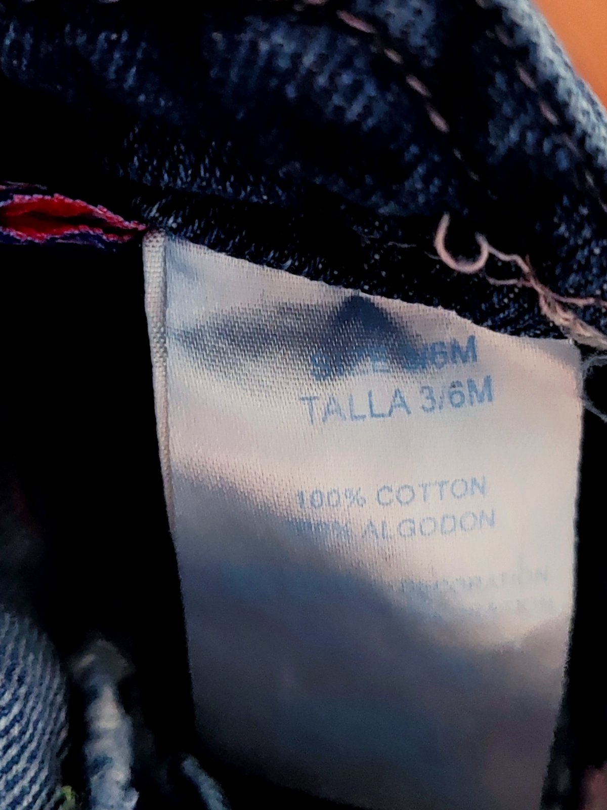 Veľmi dobrý stav! Dojčenské dievčenské džínsové nohavice s trakmi, tenké, pás na gombíky, dve predné vrecká, s vyšívaným vzorom, zapínanie v rozkroku na cvoky, nie sú elastické, materiál:100%bavlna...
