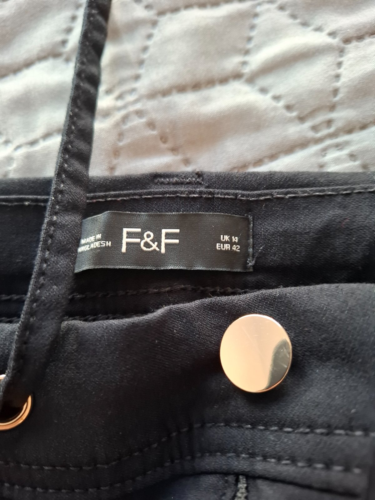 Čierne nohavice so striebornou lurexovou nitkou, veľmi elegantné, s elastanom. Pás 43-44 x2, dĺžka 94, predný sed 27 cm ,zadný 40, stehno 30,5 až 33x2, šírka dole 14,5 x2