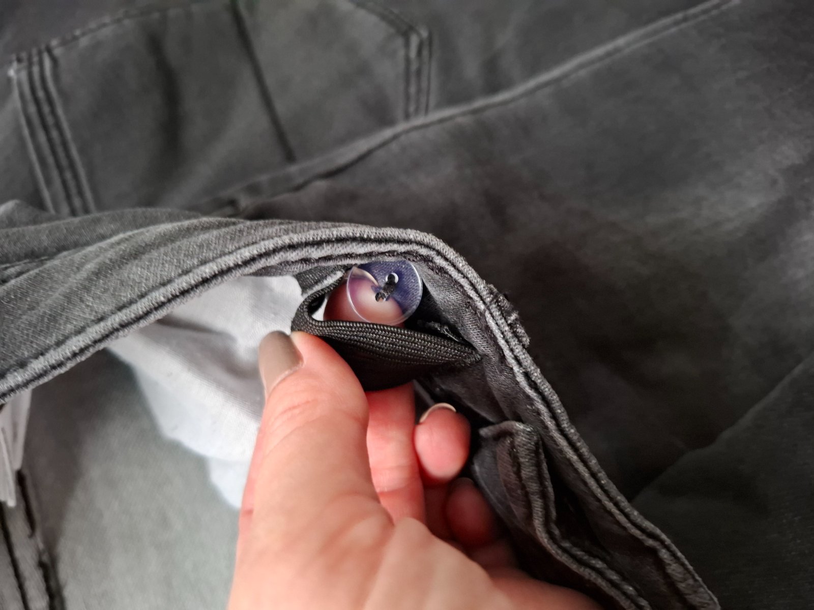 Nosene, spodky nohavic nevysuchane, na pravom vrecku mini dierky,