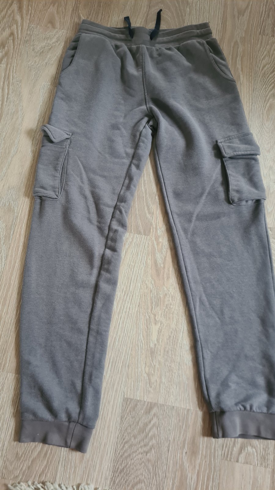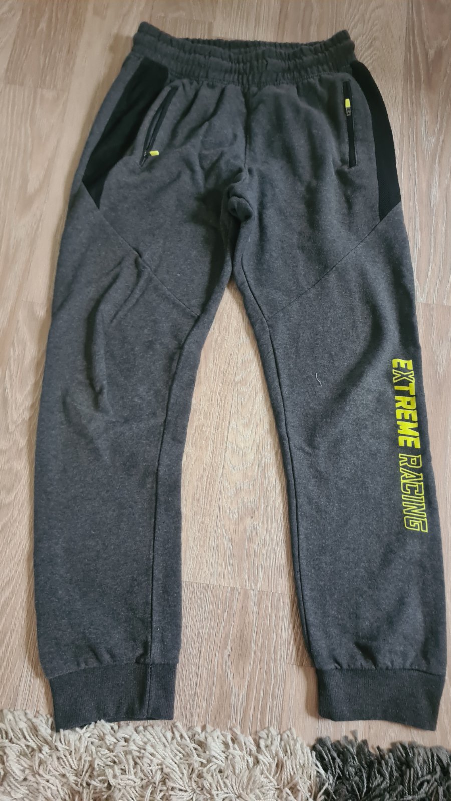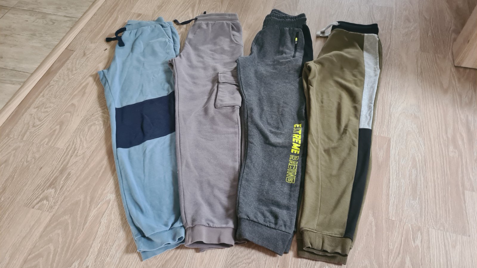 4 teplákov, stav ako na foto. Jedny maju zazehlovaciu zaplatu na kolene. Vsetky nosené, ale určite ešte využiteľné, syn ich už vyrástol. cena spolu: 11 Eur jednotlivo: 3 Eur