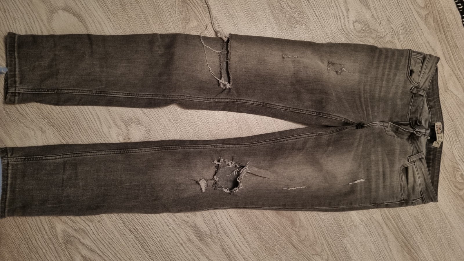 Krásne tmavo šedé rifle značky Zara veľkosť 36 ...rozširene ,rozstrapkane konce