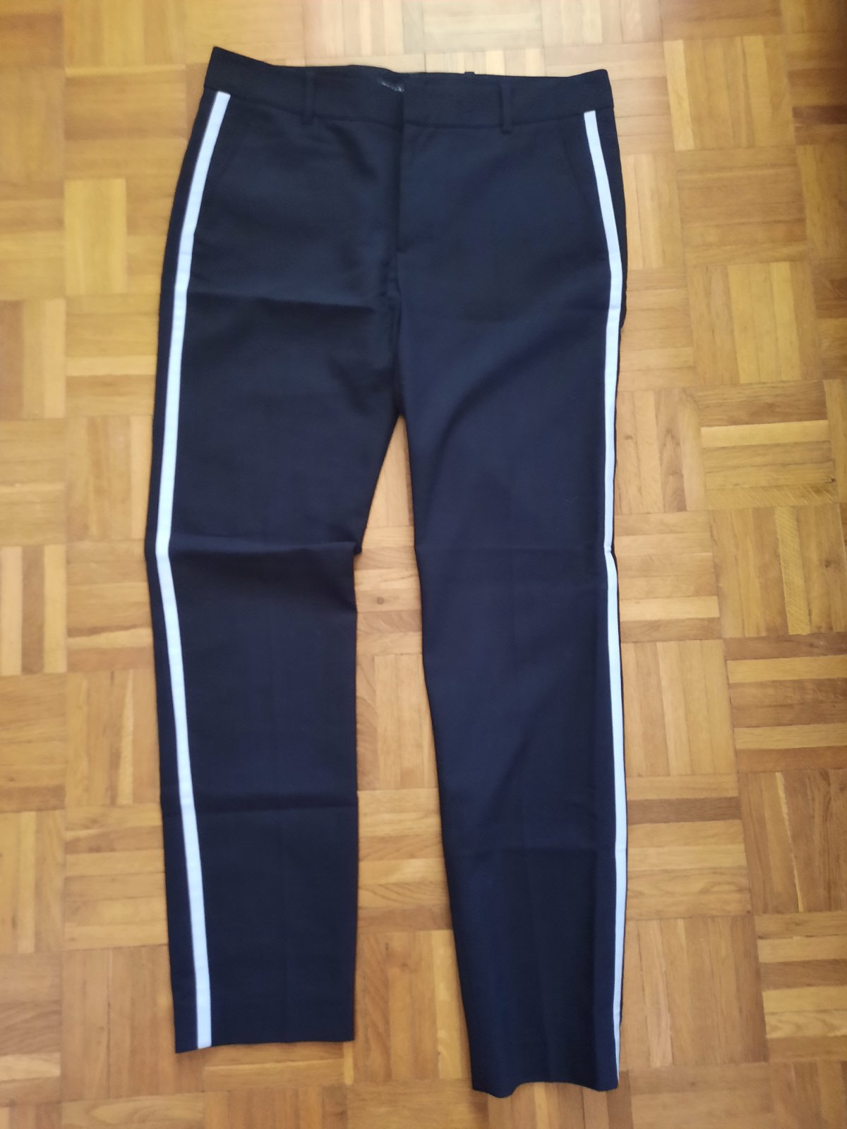 Super dámske nohavice v top stave-oblečené iba chvíľku. Na boku je ozdobný biely pásik. Vačky sú z boku. Odporúčam 👍