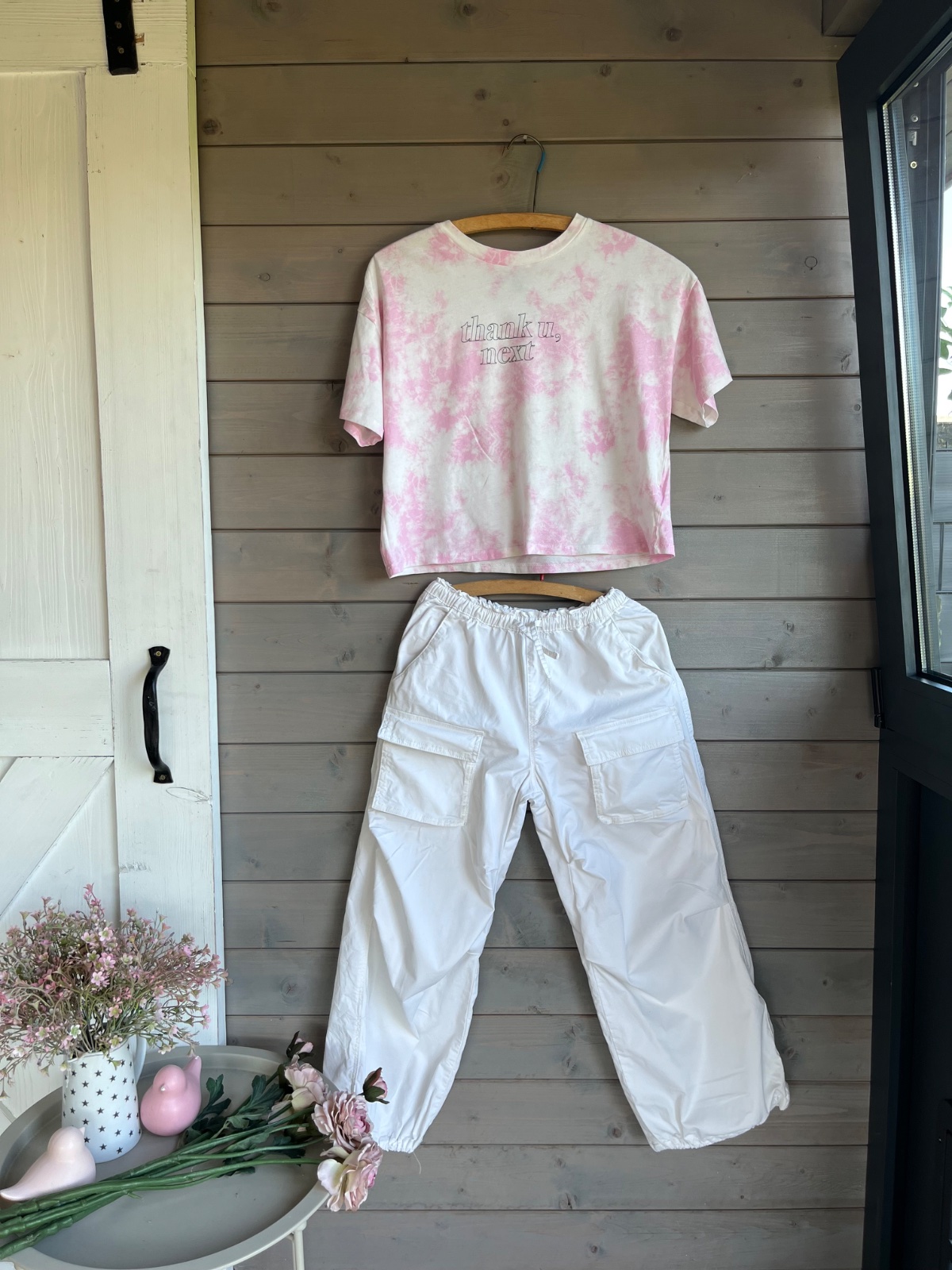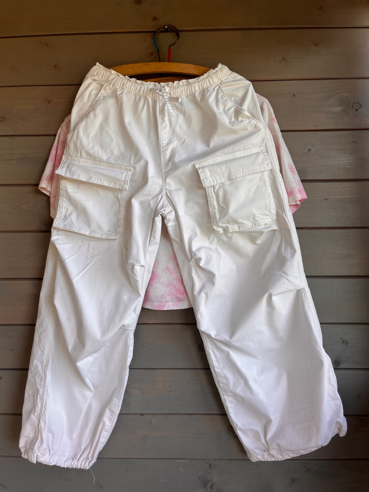 Top krasne kremove cargo nohavice v super stave.