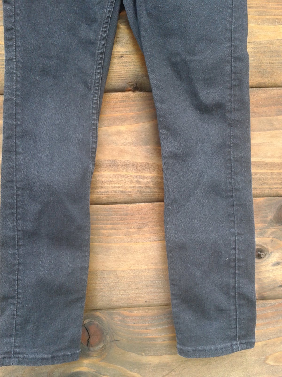 Uzke riflicky na chuducke dievčatko. Maju osuchane kolena