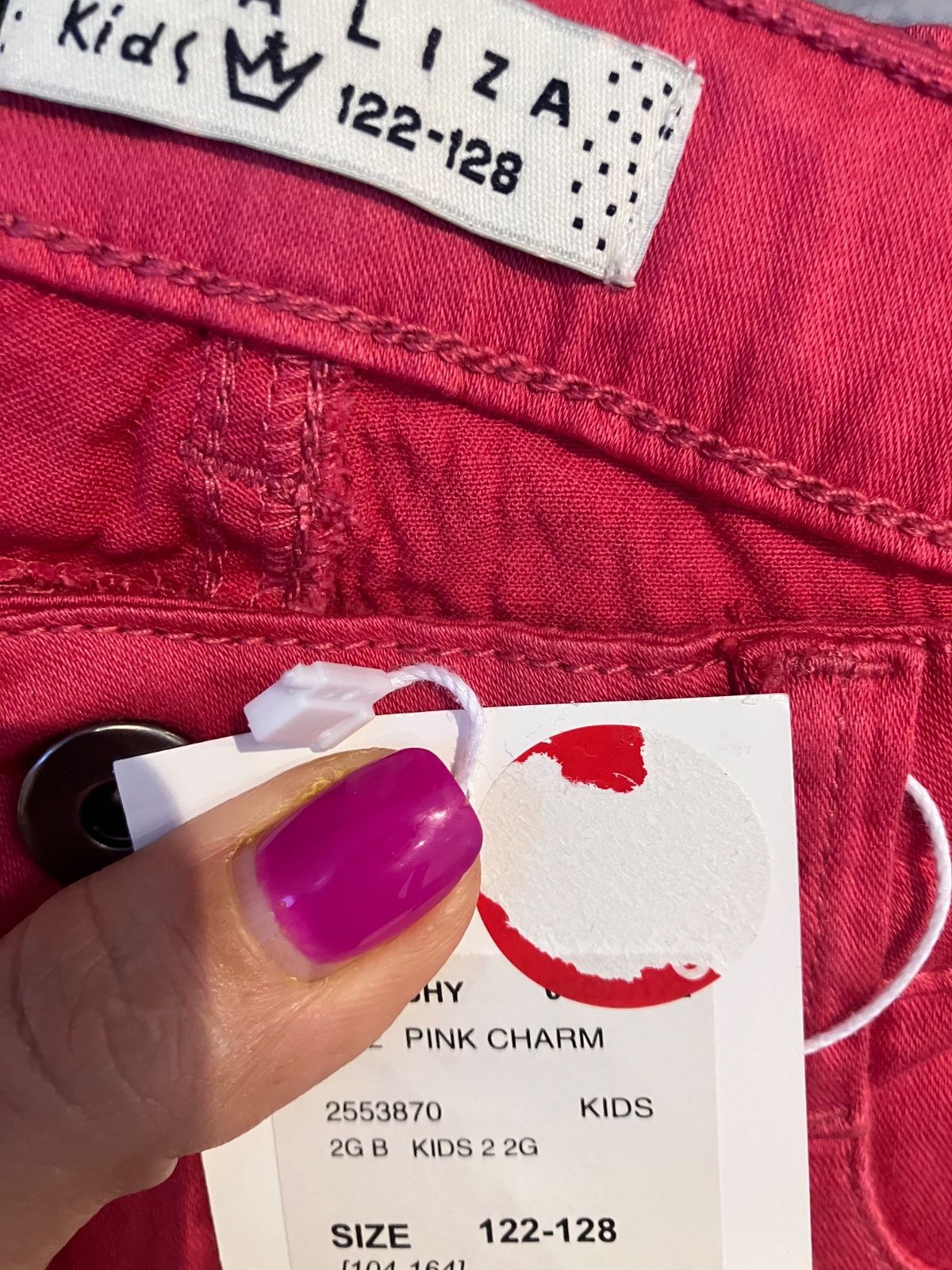veľk.122-128:dĺžka (meraná vzadu):70,5cm,od rozkroku dĺžka dole:49,5cm,zadný sed:26cm,predný sed:18cm,obvod drieku:59cm,