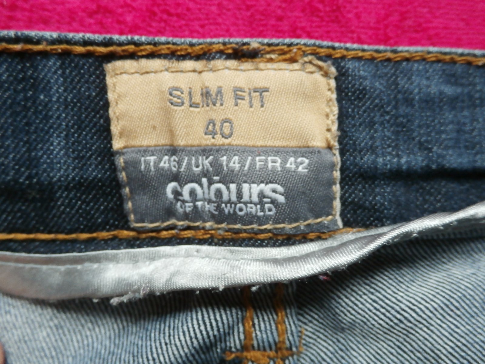 Veľmi dobrý nosený stav, skôr tenšie, veľmi pohodlné, elastické, dĺžka bočná 108cm, dĺžka vnútorná 81cm, šírka v páse 41-44cm, šírka boky 53-62cm, šírka dole 17cm, predný sed 23cm, zadný sed 39cm.