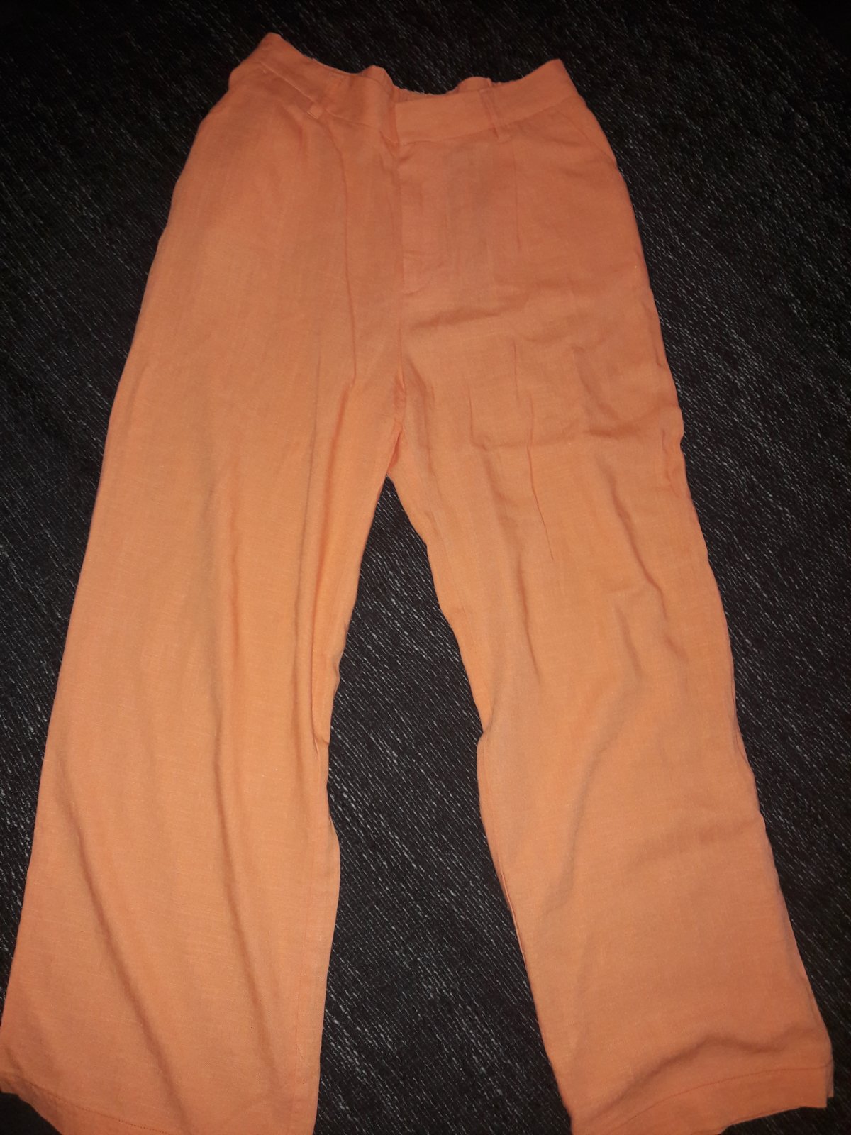 Predám krásne nohavice, farba je taká tehlovo-oranžová ako na hlavnej fotke. Materiálovo sú mäkkučké.
