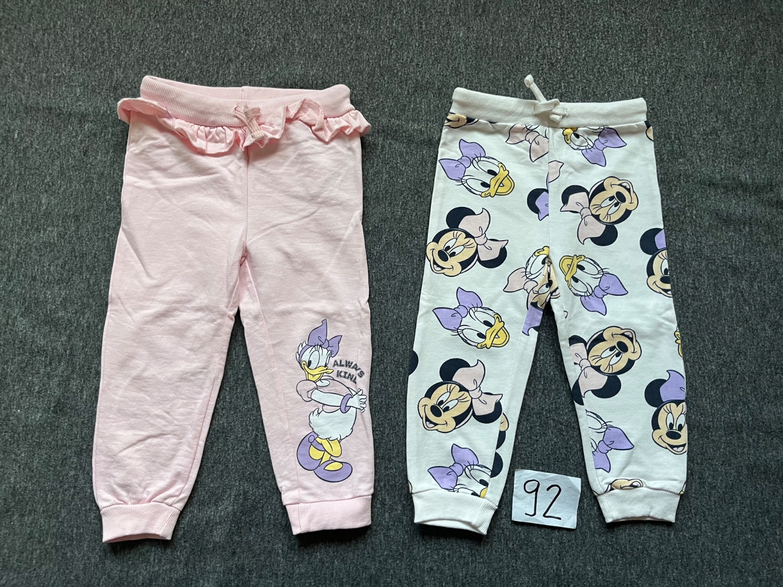 Len oprané tepláky Minnie a Daisy. Veľkosť 92