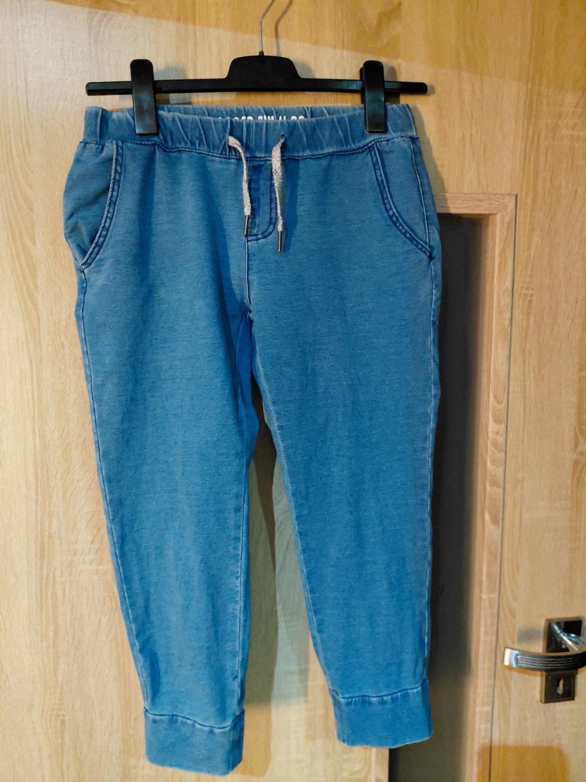 Tenšie tepláky s gumou a zaťahovacou šnúrkou, veľmi dobrý stav, mierne žmolky