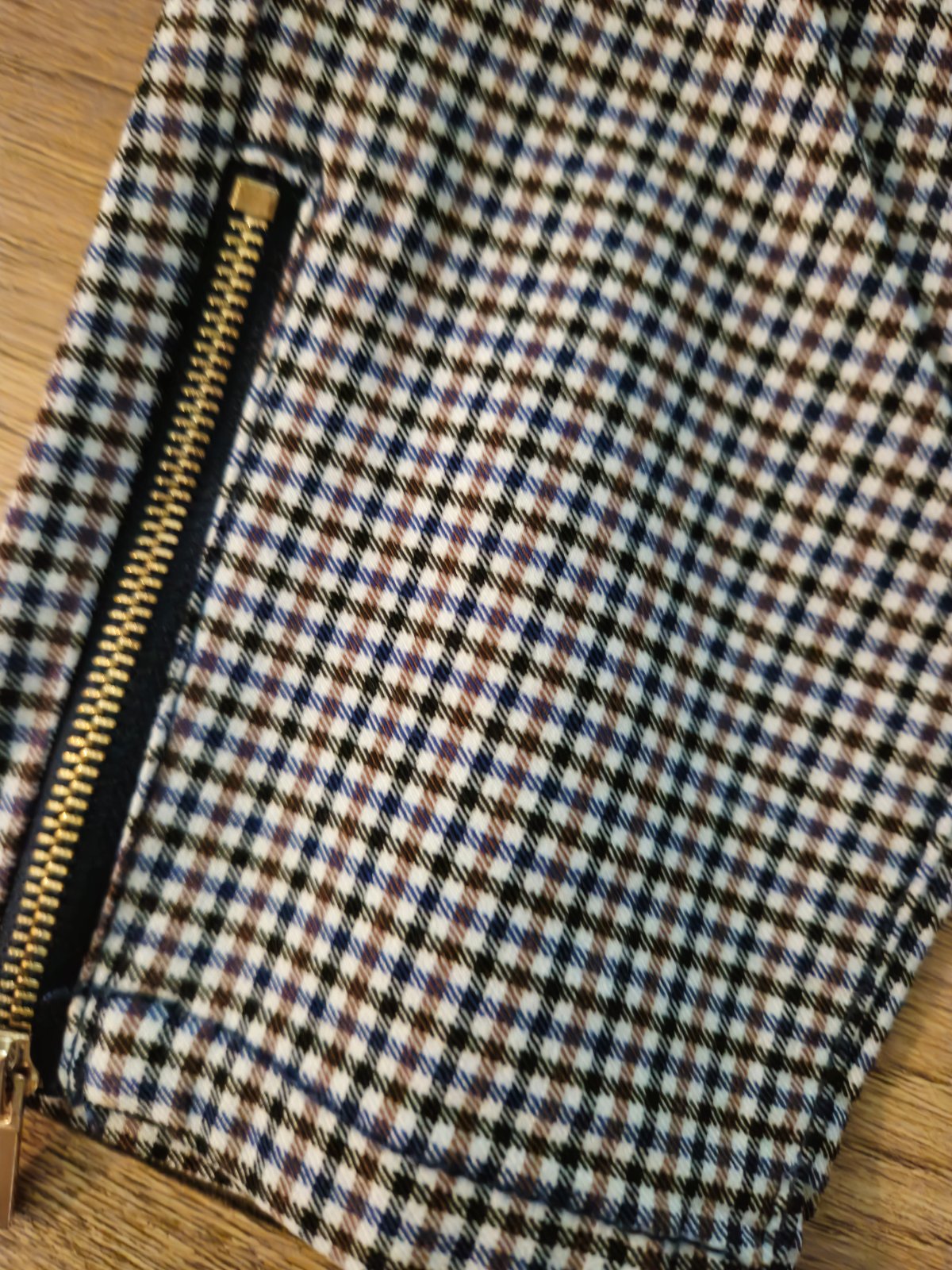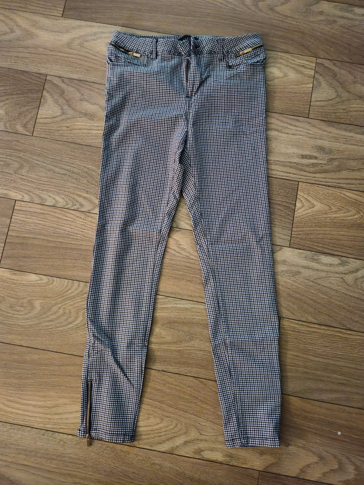 Top stav. Ako nove,takmer nenosene. Pisana velkost 40, ale sedia skor na 38. Su elasticke. Dole na zipsy pri clenkoch. Farba modro bielo hneda.
