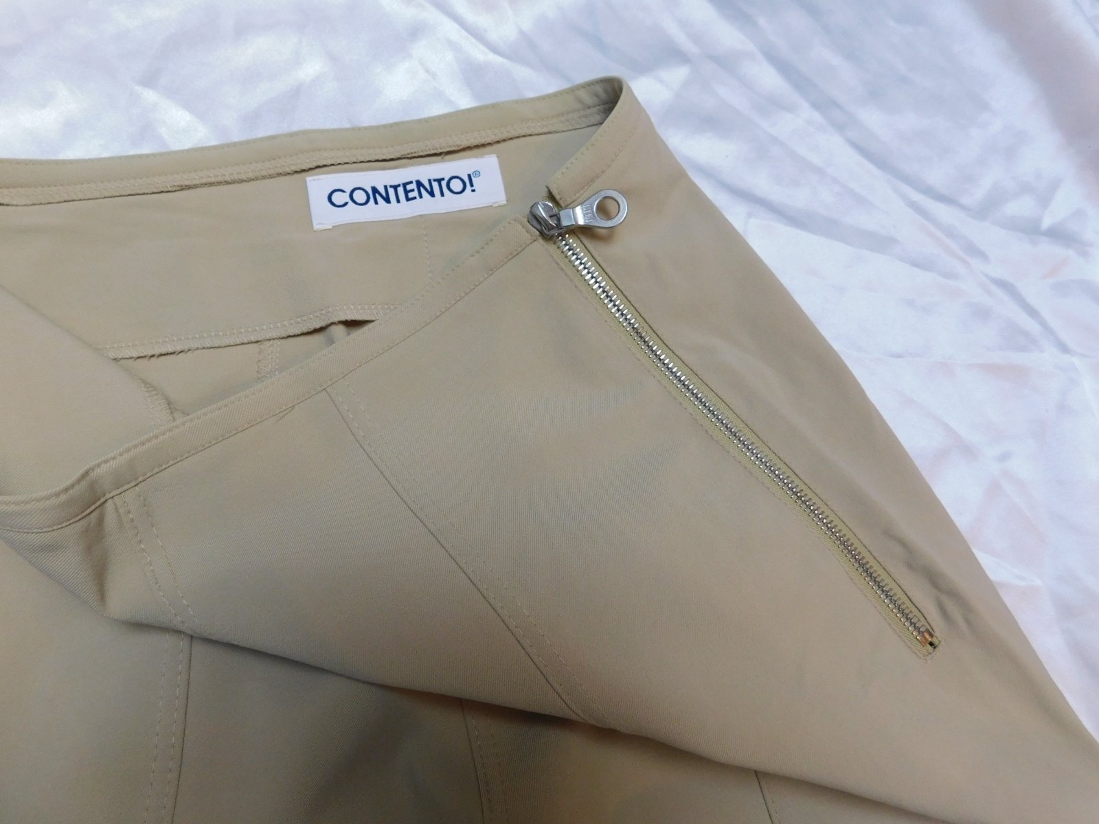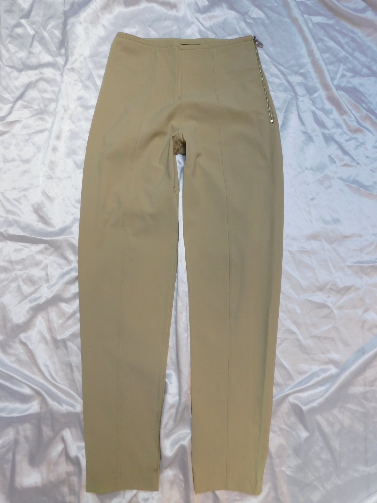 CONTENTO! kvalitne strečove nohavice pieskovej farby,prisposobive,na boku zips.90%polyamid,10%elastan.super stav. se35.