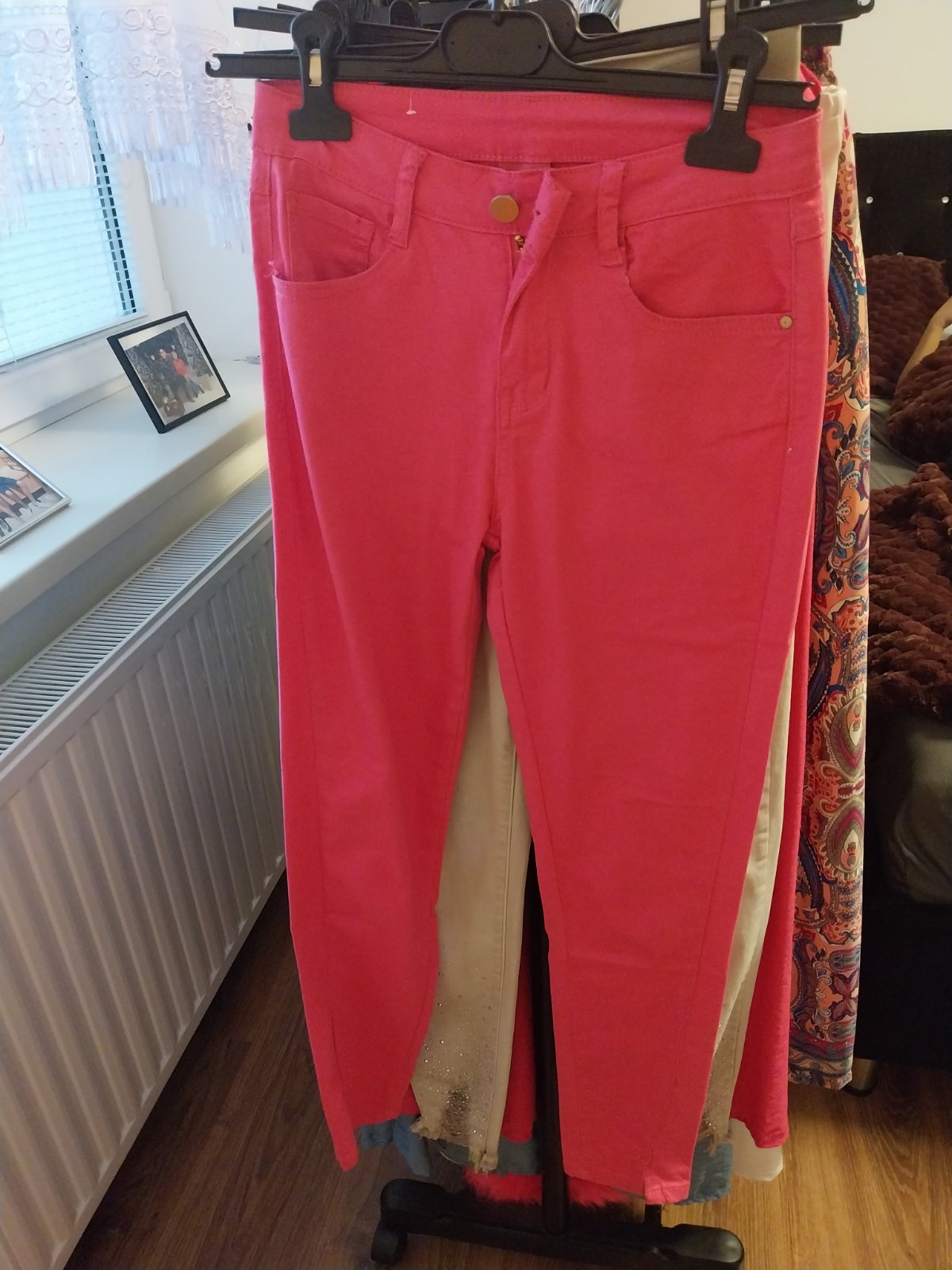 Predám ružové rif.nohavky trhané po celej dlzke, max.elasticke, strašne bedrove(predný sed:18cm, zadný sed:26cm)!!! veľ.uvedená M no zodpoveda XS - menšie S, ja ich vytiahnem iba po boky a nosim S/...