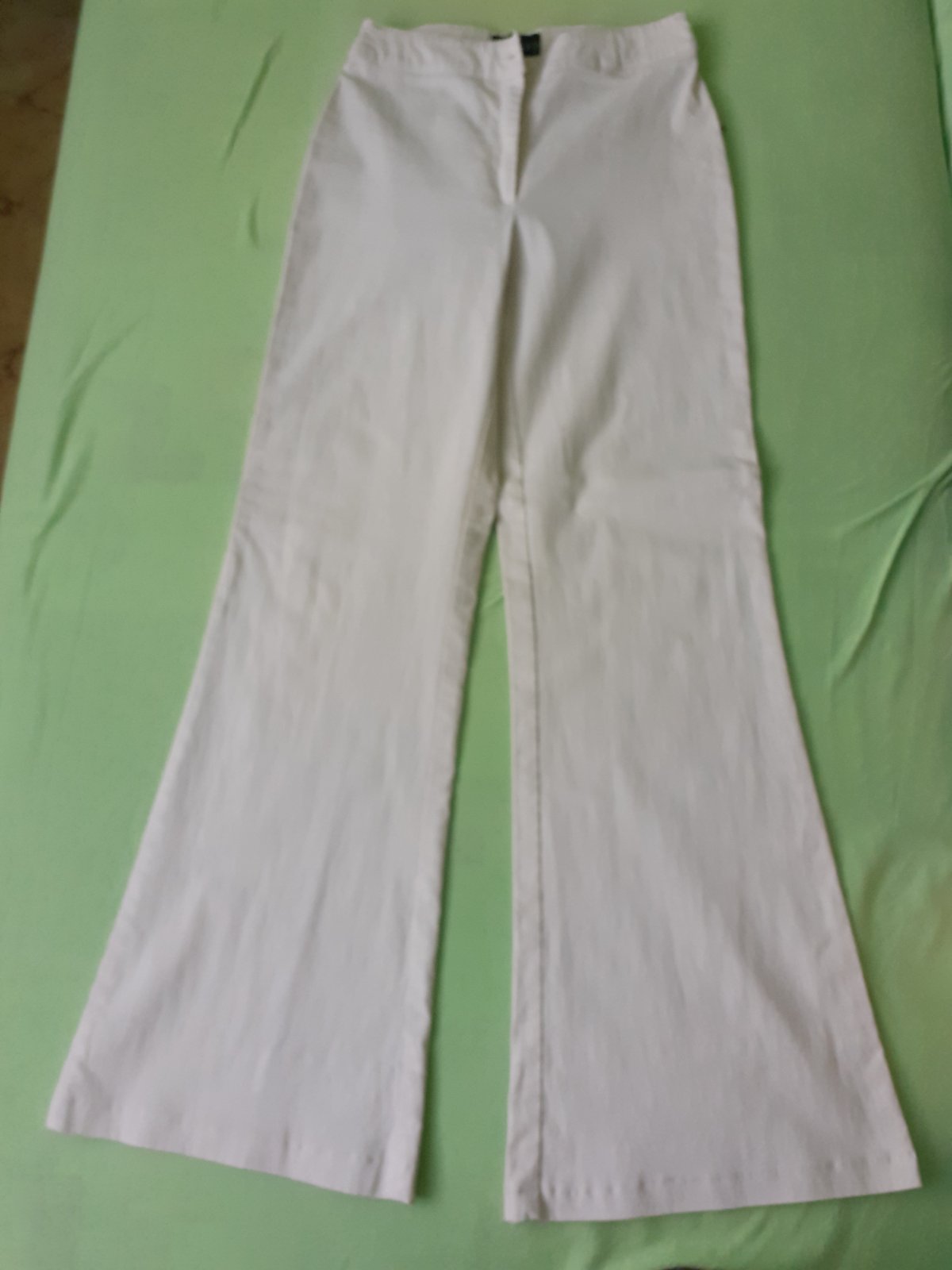 Šité nohavice z bavlnenehorr popelinu v boho style. Sedia na XS, nizky pas, predny sed 20 cm, dlzka 89 cm, pas 2x36. Latka ma farebny kaz, vid foto, maju zips, nie gombik, zahnute okraje nie su oen...