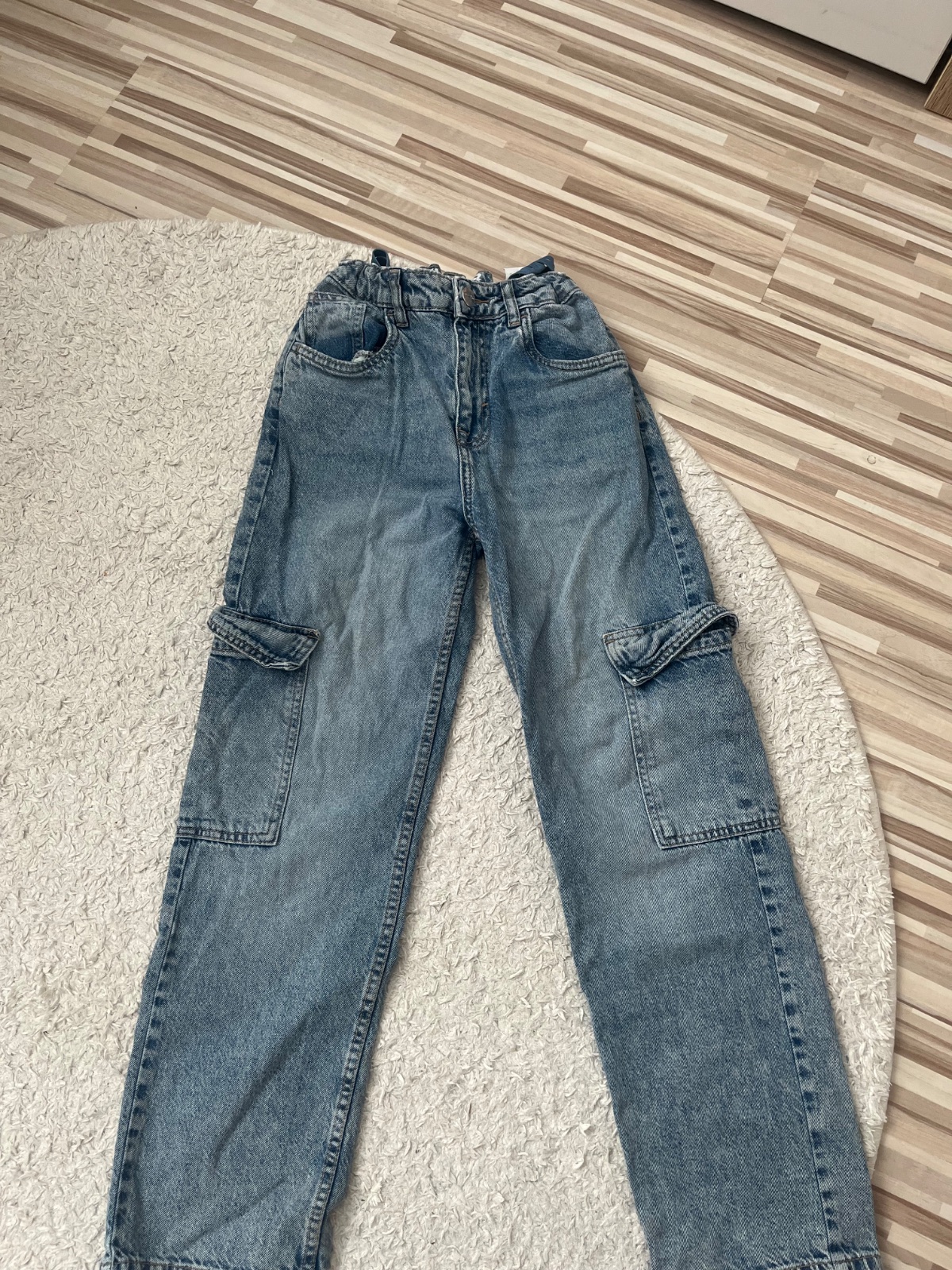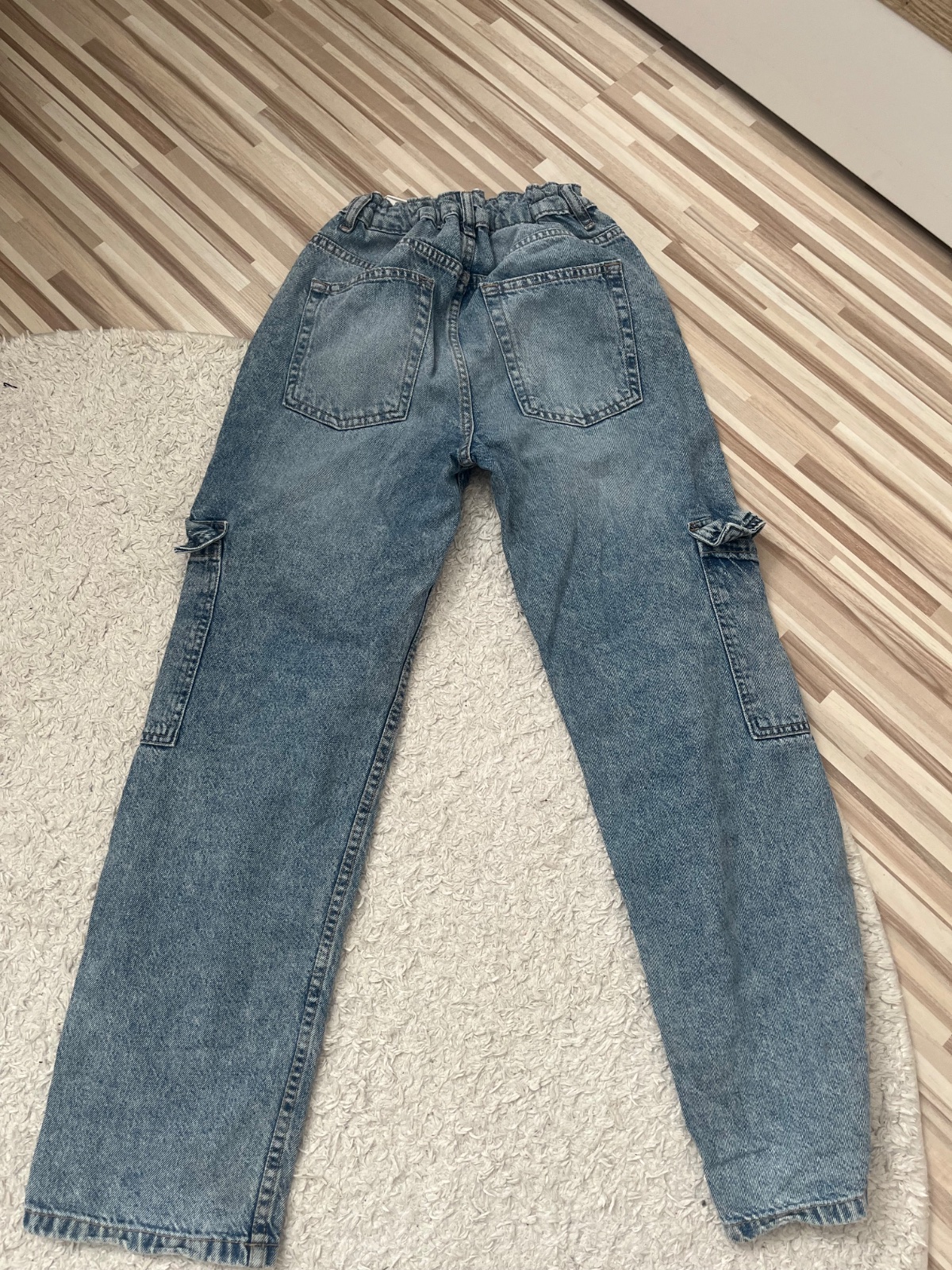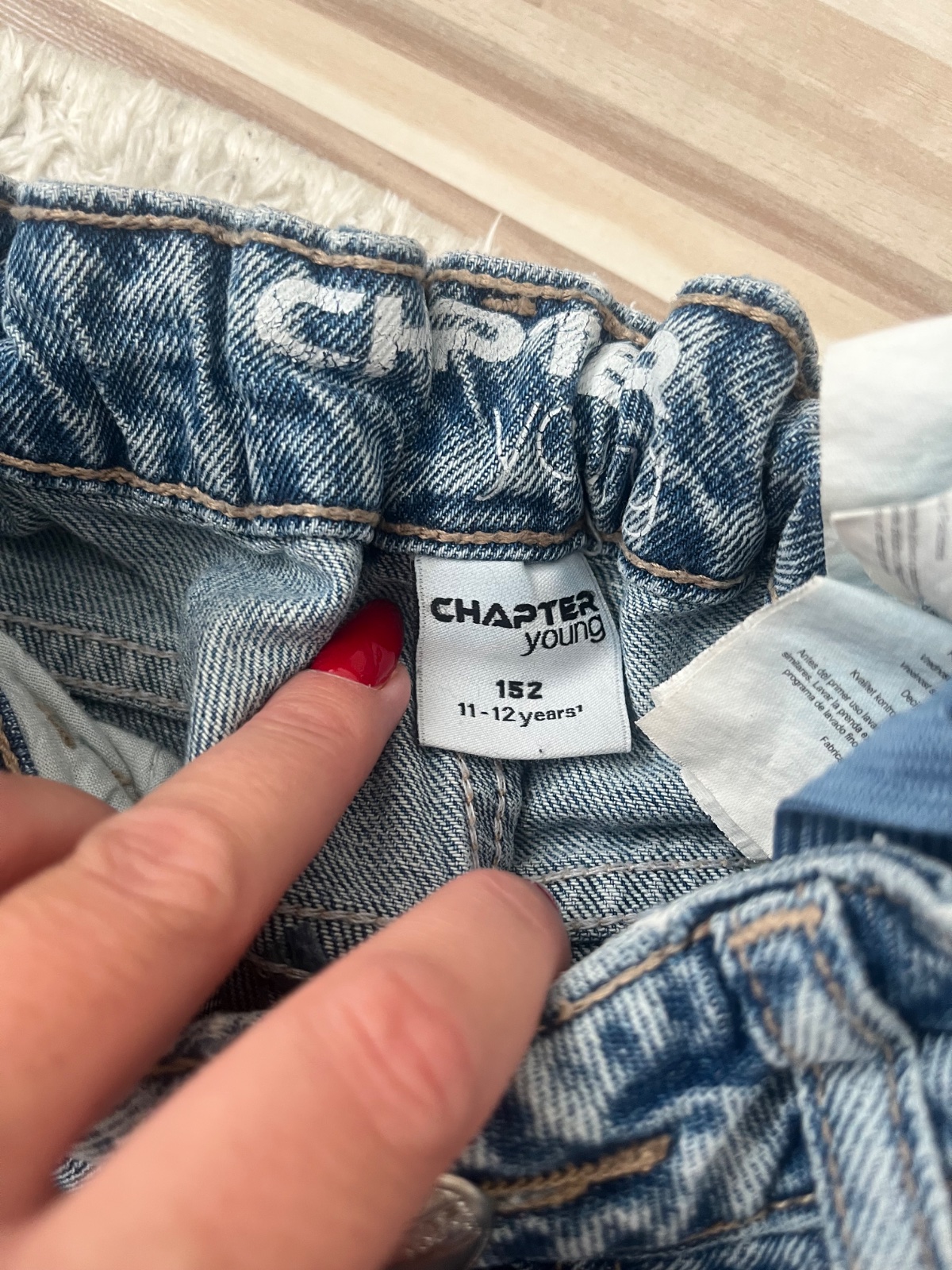 Rifle zn. Chapter Young (Takko), veľ. 152. Elastické, zapínanie na gombík + zips, 3 bočné vrecká + 2 zadné. Rozmery: postranná dĺžka 92 cm, od rozkroku dolu 67 cm, šírka v páse 32 cm.