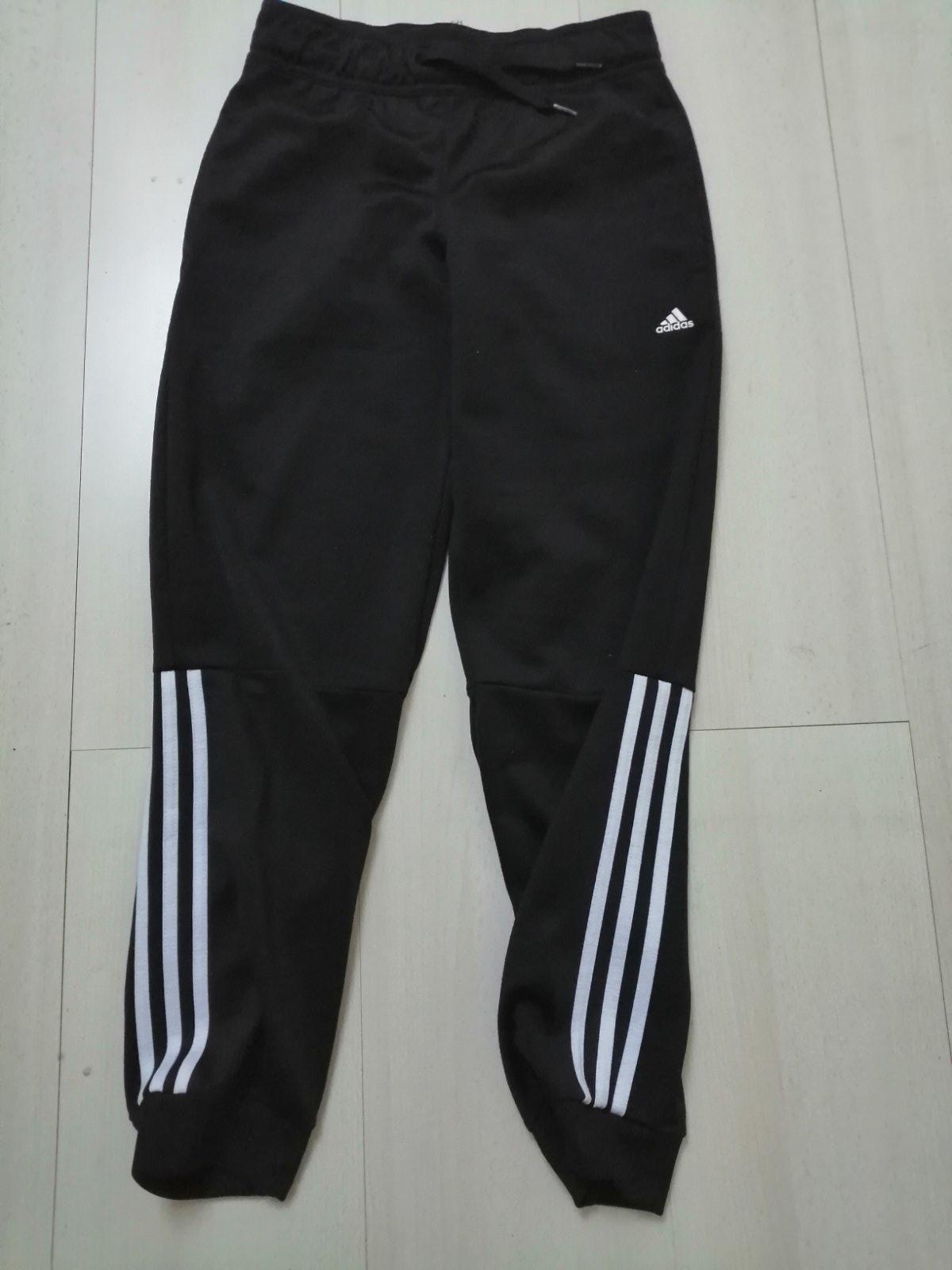 Teplaky pre chlapcov Adidas čiernobieke, obvod pasa je od 68 cm do 76 cn, je na gumicku a šnúrku a dĺžka je 89 cm