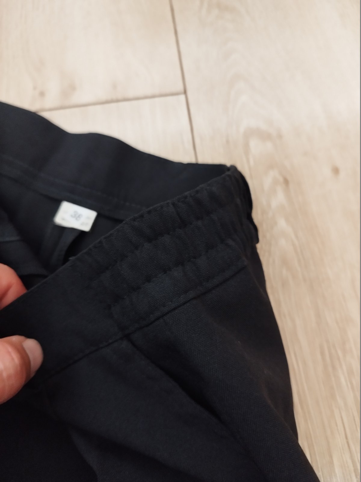 Ako nové, tesilové, na spodku rázporok, na páse po bokoch guma, veľ.písaná 38