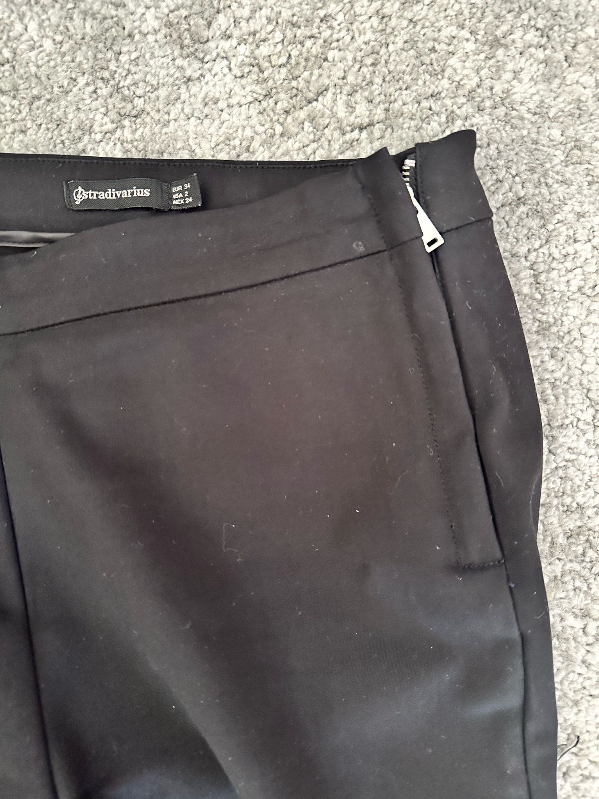 Nosene čierne úzke nohavice na zips z boku veľkosti 34 značky Stradivarius, bez poškodenia