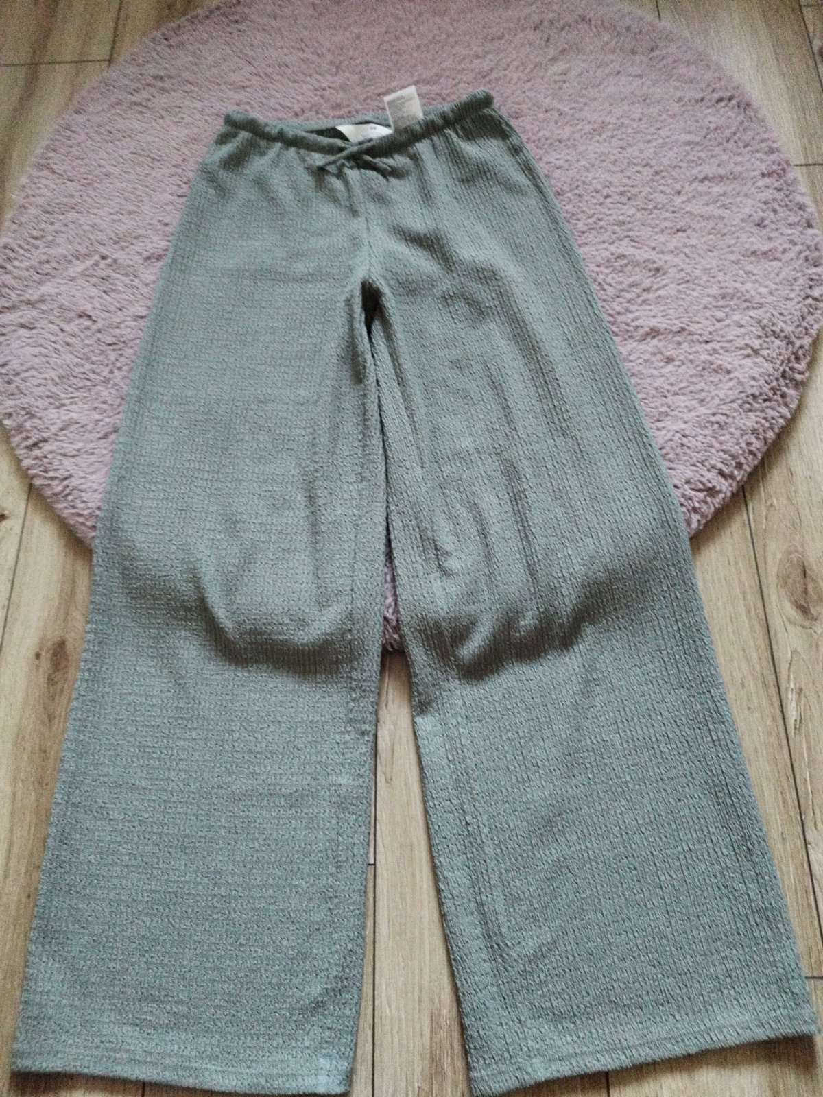 Krásne letné džersejové krčené nohavice, veľkosť 146, veľmi zachovalé, dĺžka 89cm, v páse funkčná šnúrka