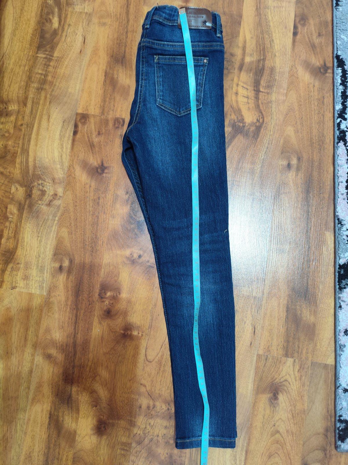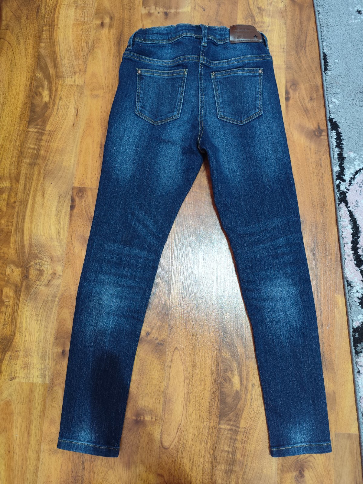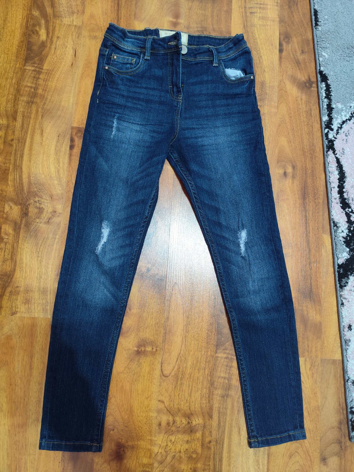 Krásne tmavomodré rifle zn.Next.Sú elastické, nesprané, nestihli sme vynosiť, dcérka preferovala leginy.Preto posúvame ďalej.V páse majú posuvnú gumičku na upravenie pásu..Dlžka:81cm,pás 32cm.