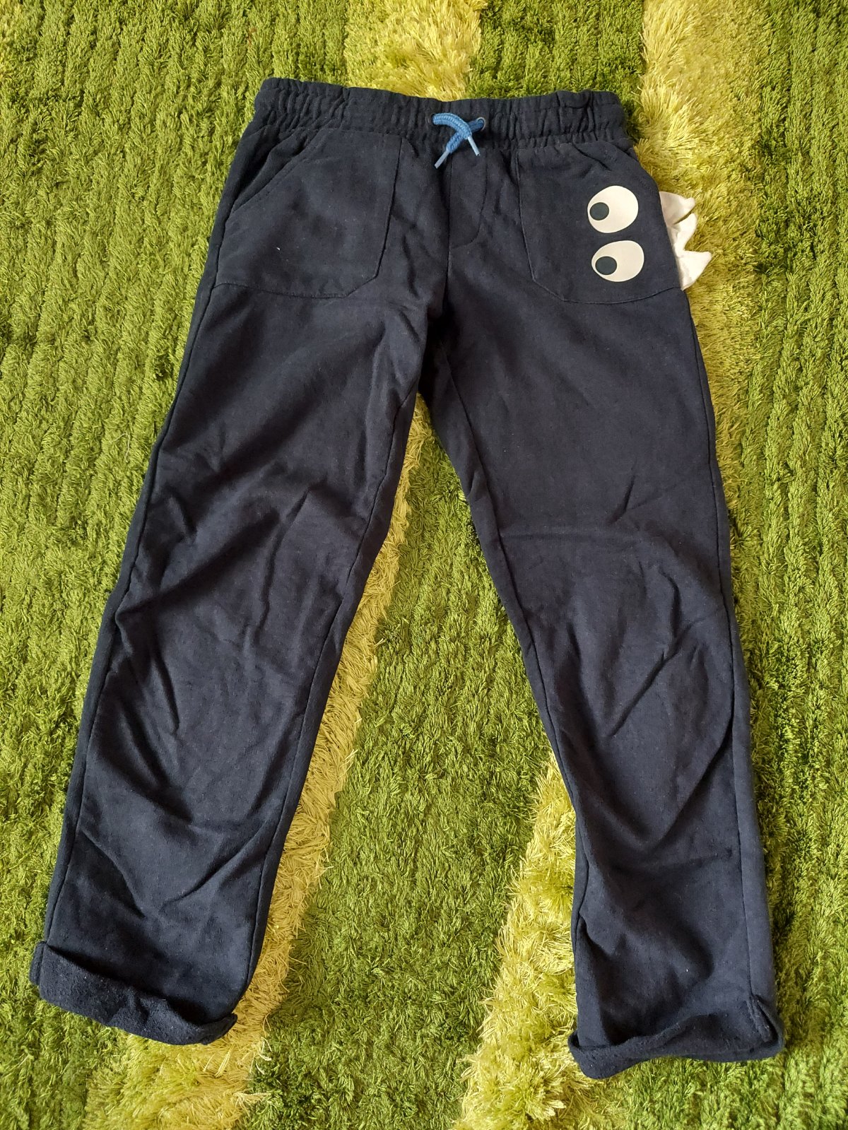 Predám chlapčenské tepláky, veľkosť 134, tmavomodré značka Y.F.K., pruhované značka Authority.