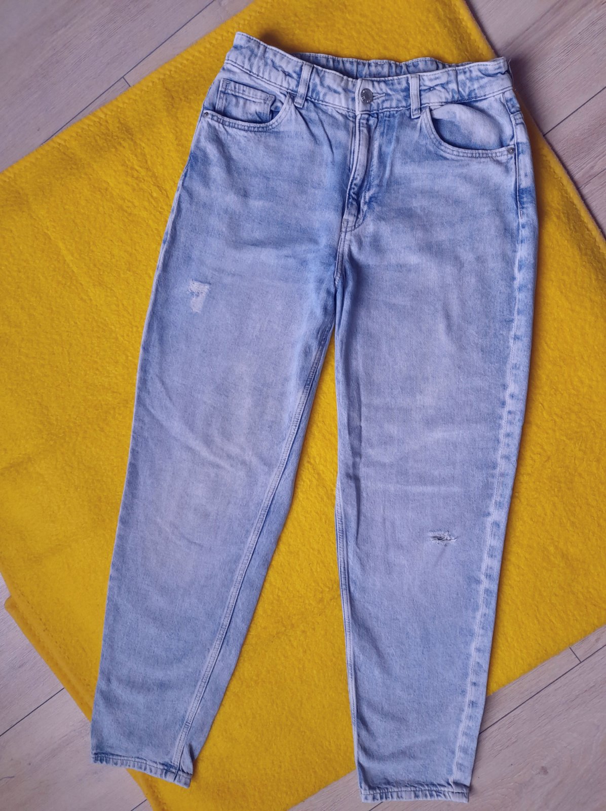 Svetlomodré rifle s módnymi dierkami