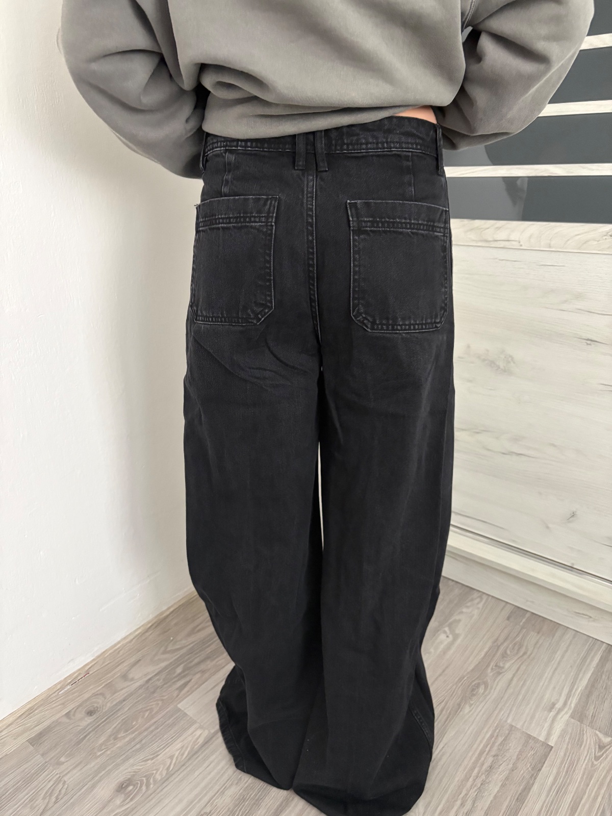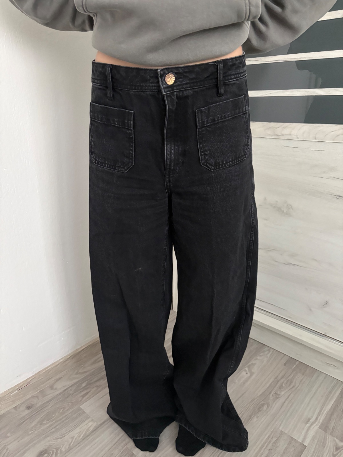 Perfektné elastické rifle uhľovej farby s dotrhaným vzorom.