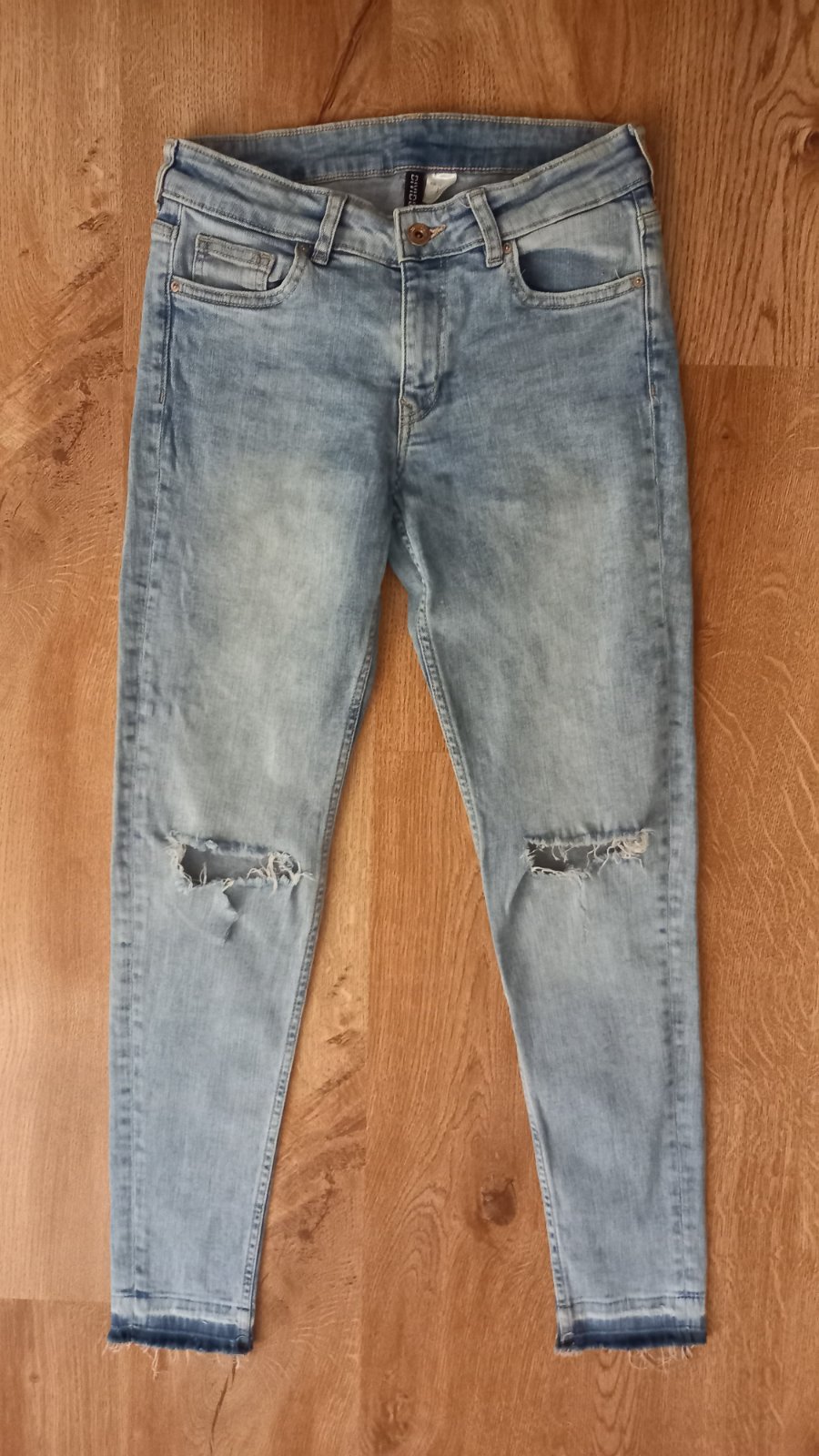 Dámske rifle s deravými kolenami,pekná jasná modrá farba