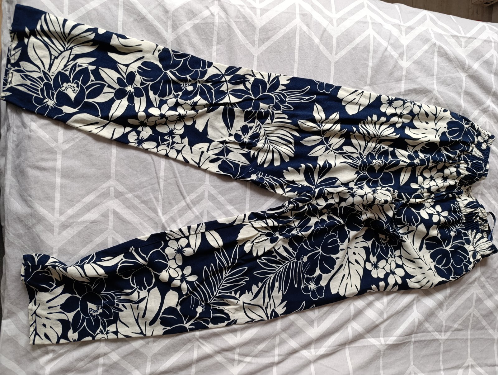 Nohavice nosene minimalne skor príležitostne Tmavomodre pas 33cm a dĺžka 100cm sú bez visačky Krémové,elastické značka sinsay Pas 33cm,dĺžka 98cm veľkosť S Cena za kus