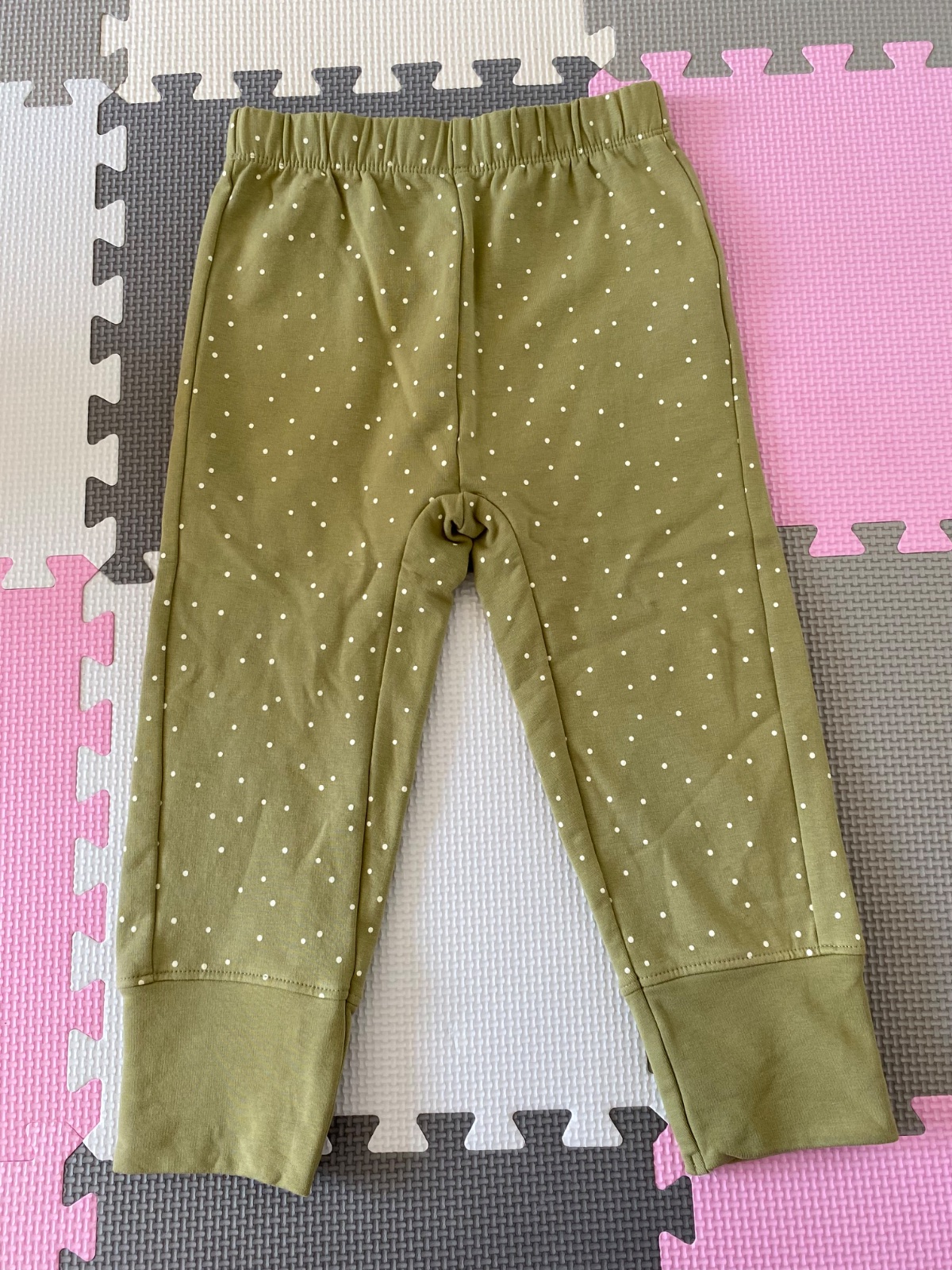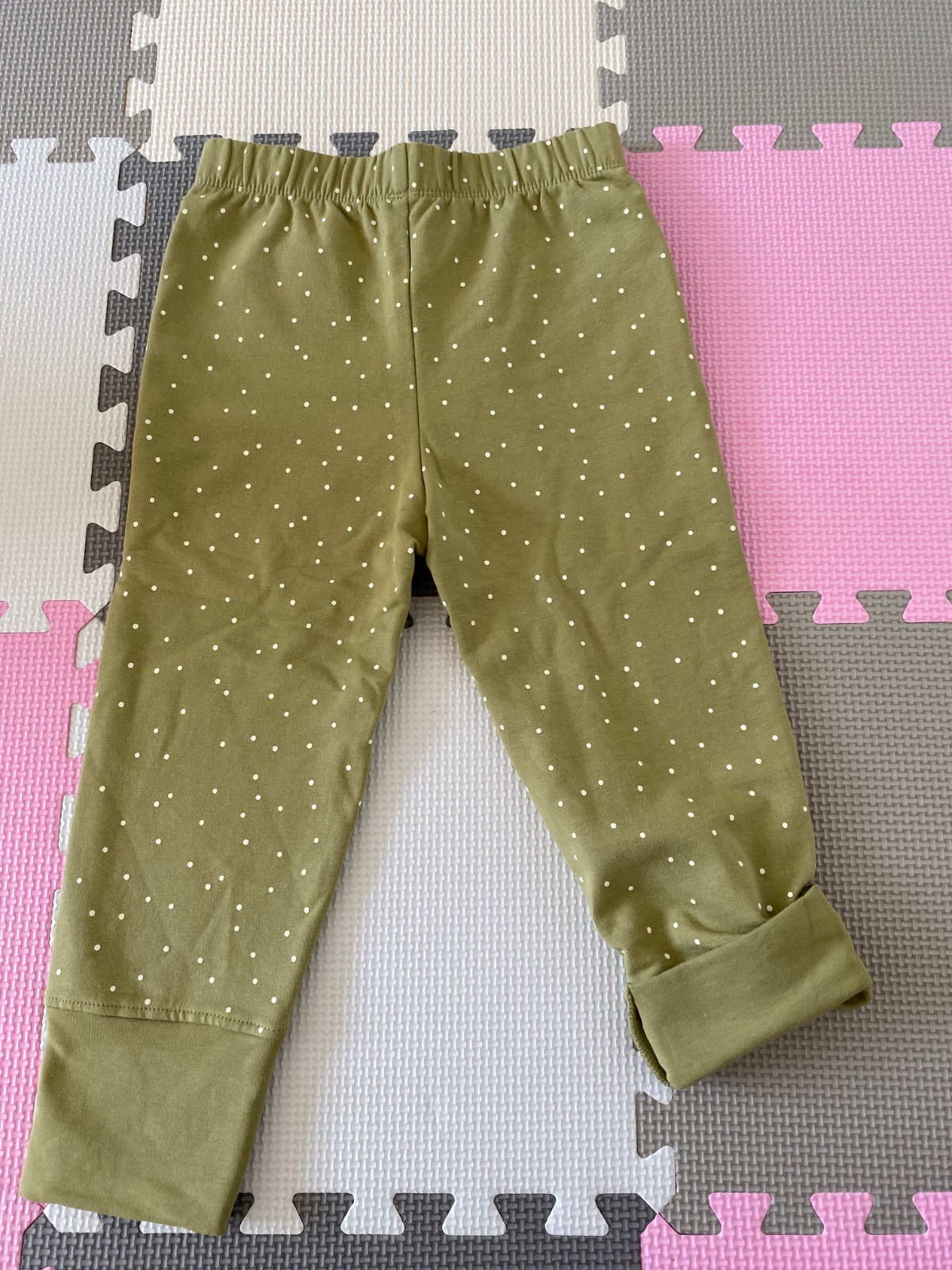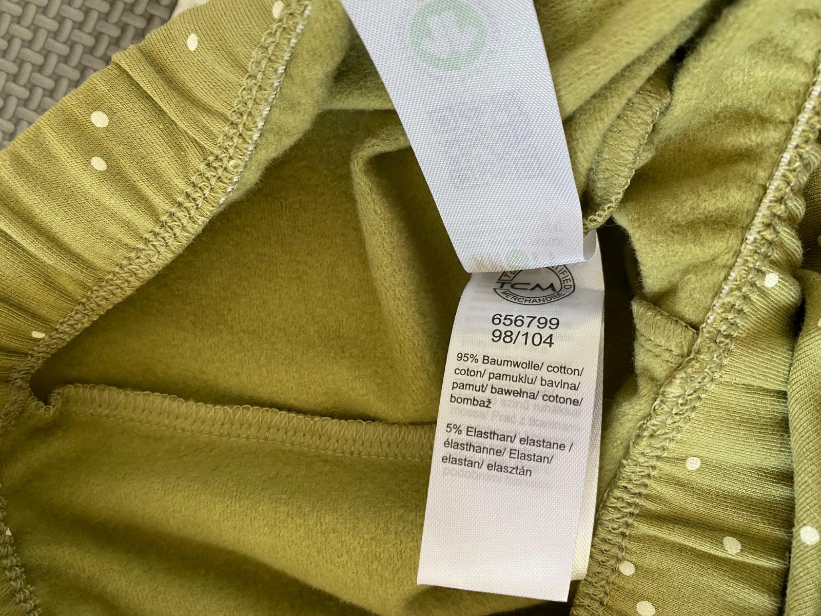 Nenosené, iba opraté. Dvojčíslo 98/104, vzor biele bodky.