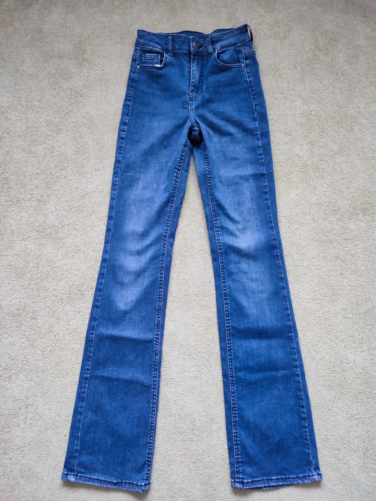 zvonové jeggings, veľkosť od Calzedonia je 1, sedia na konfekčnú 32 alebo XXS, ideálne pre chudú dlhonohú tínedžerku. nosené dcérou príležitostne, bez akýchkoľvek poškodení.