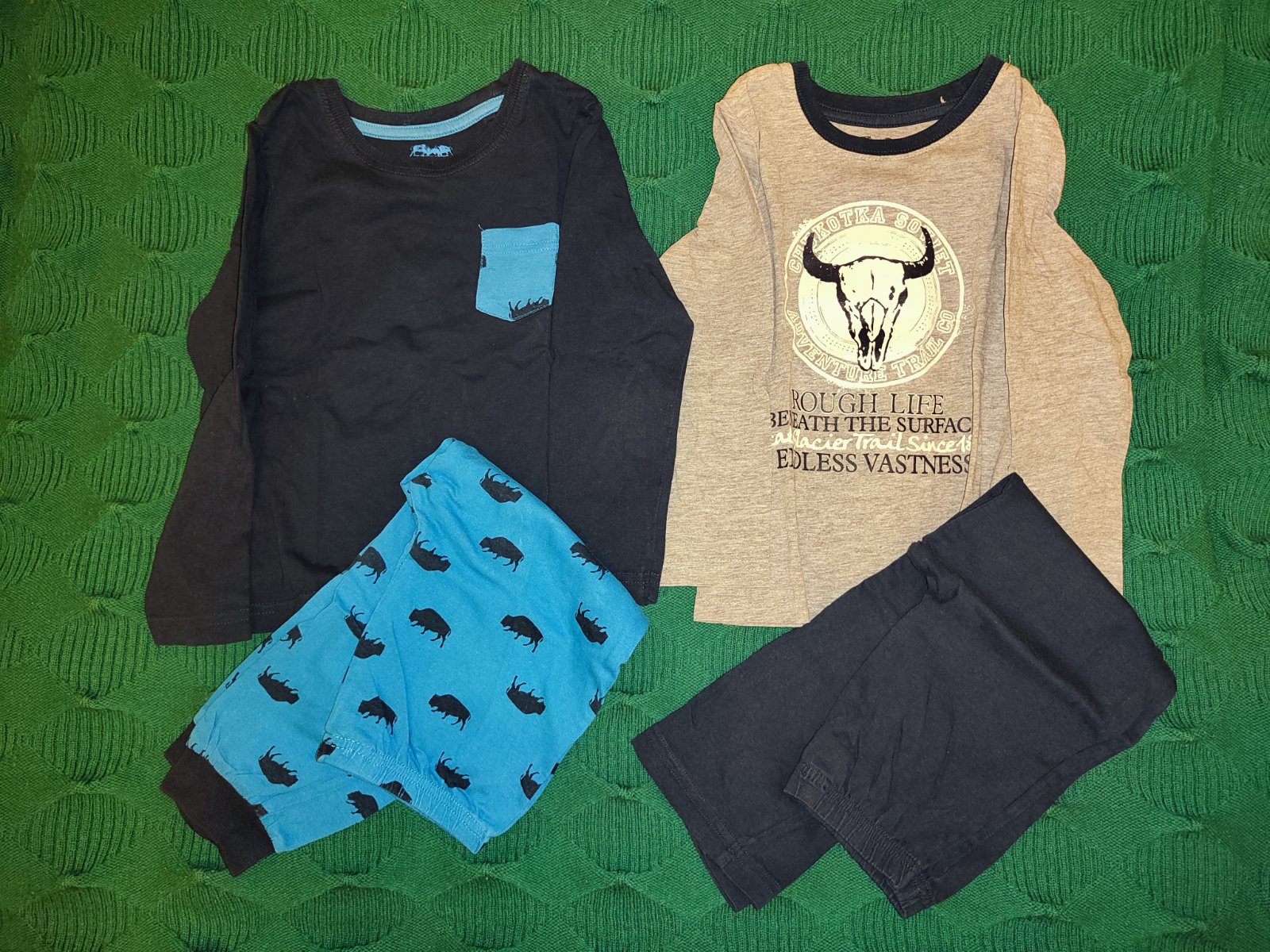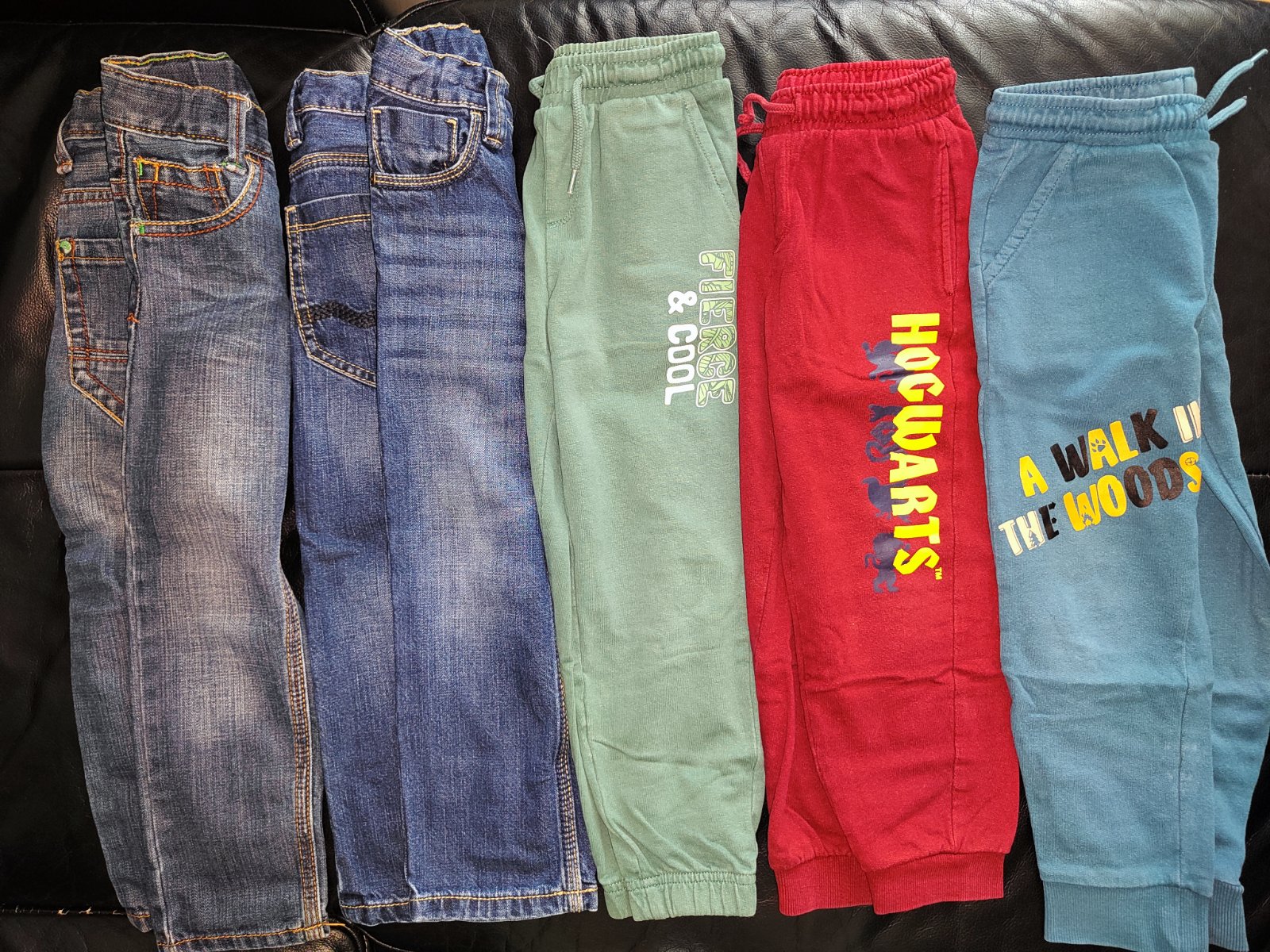 Predám zachovalé, nepoškodené teplaky, rifle(velk. 104) a pyzama(velk. 98/104. Vhodné aj do škôlky. Cena 5e+poštovné.