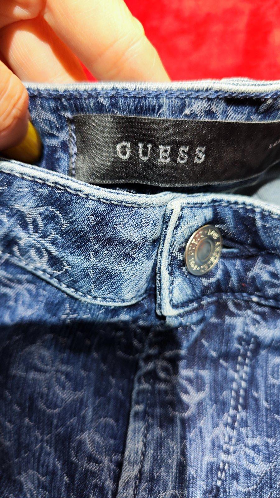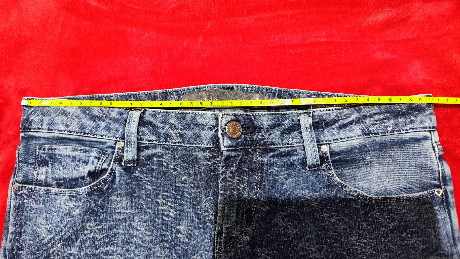 Guess dámske rifle, originál, veľkosť písaná 30. Pod vreckom majú diamantik a naspodu majú zipsy. Sú odfotené s bleskom aj bez blesku pre lepšiu predstavu. Pôvodne stáli 109,90 eur.