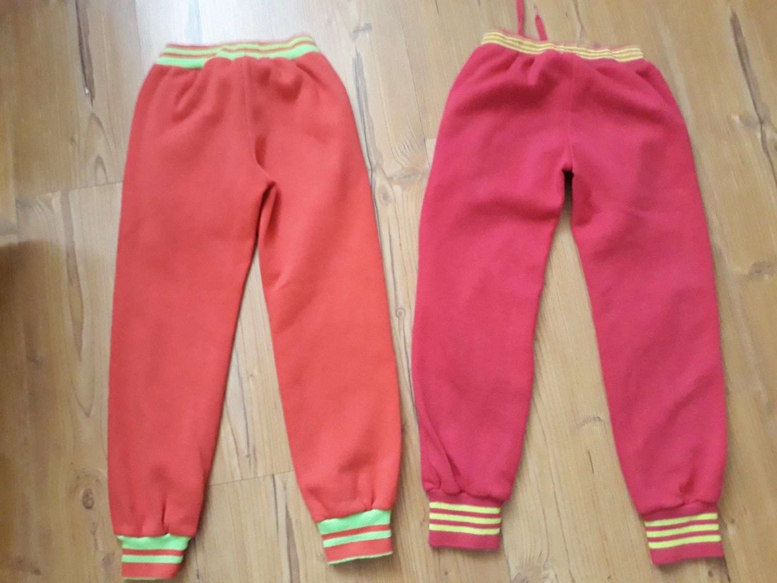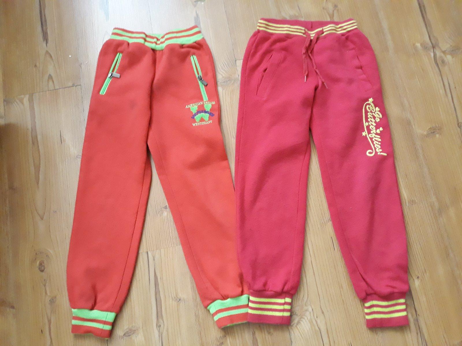 Predám dvoje tepláky. Červené veľkosť 128, bordové 134. Na oboch drobné žmolky. 6€ za obe.