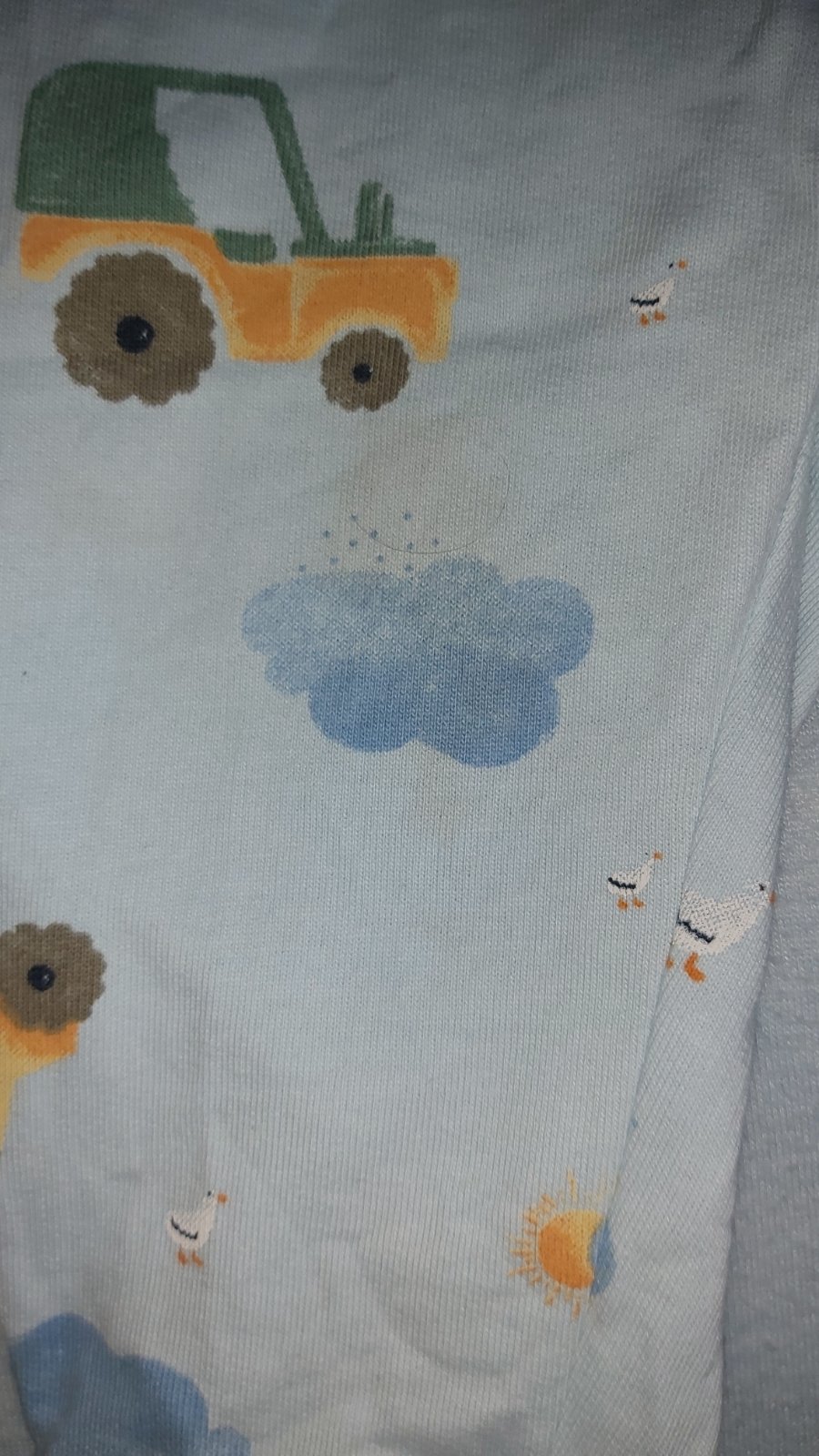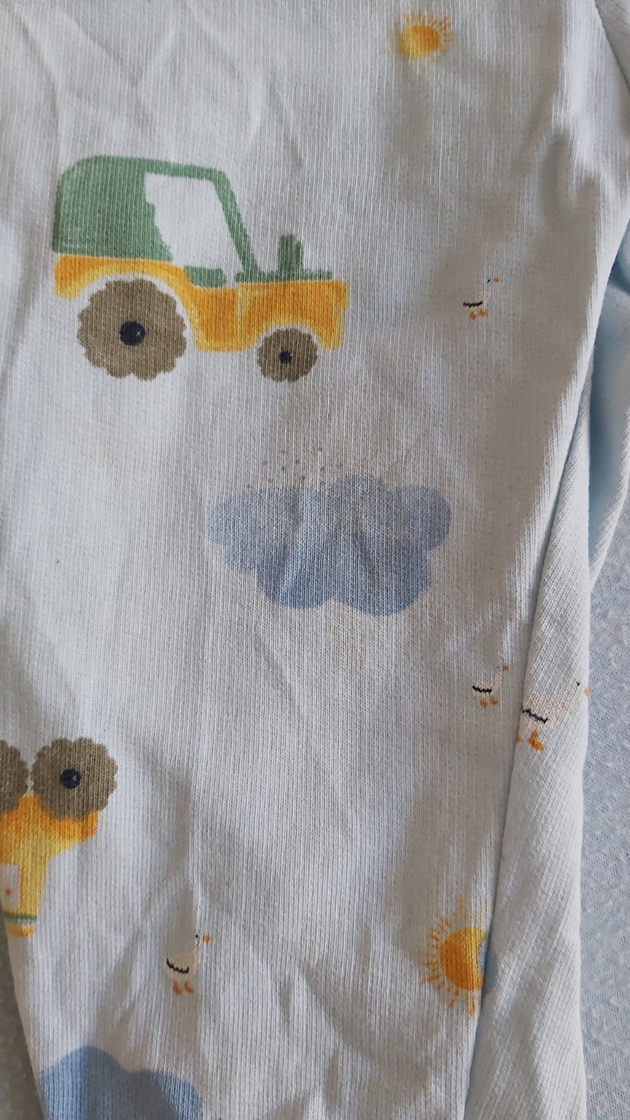 Na modrých teplákoch na pravom kolene fľak, nepodarilo sa mi ho vyprať (viď foto - s bleskom, aj bez)