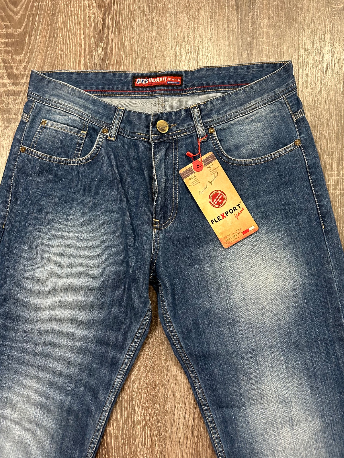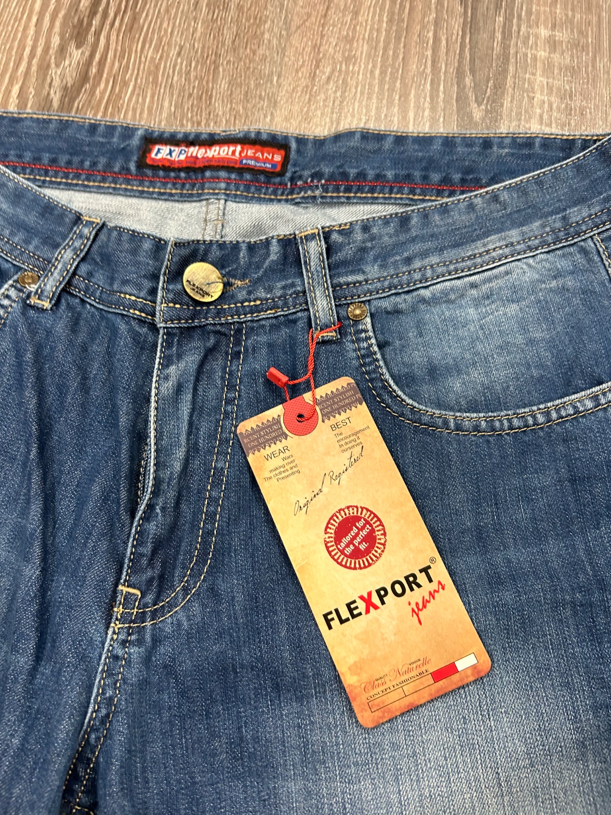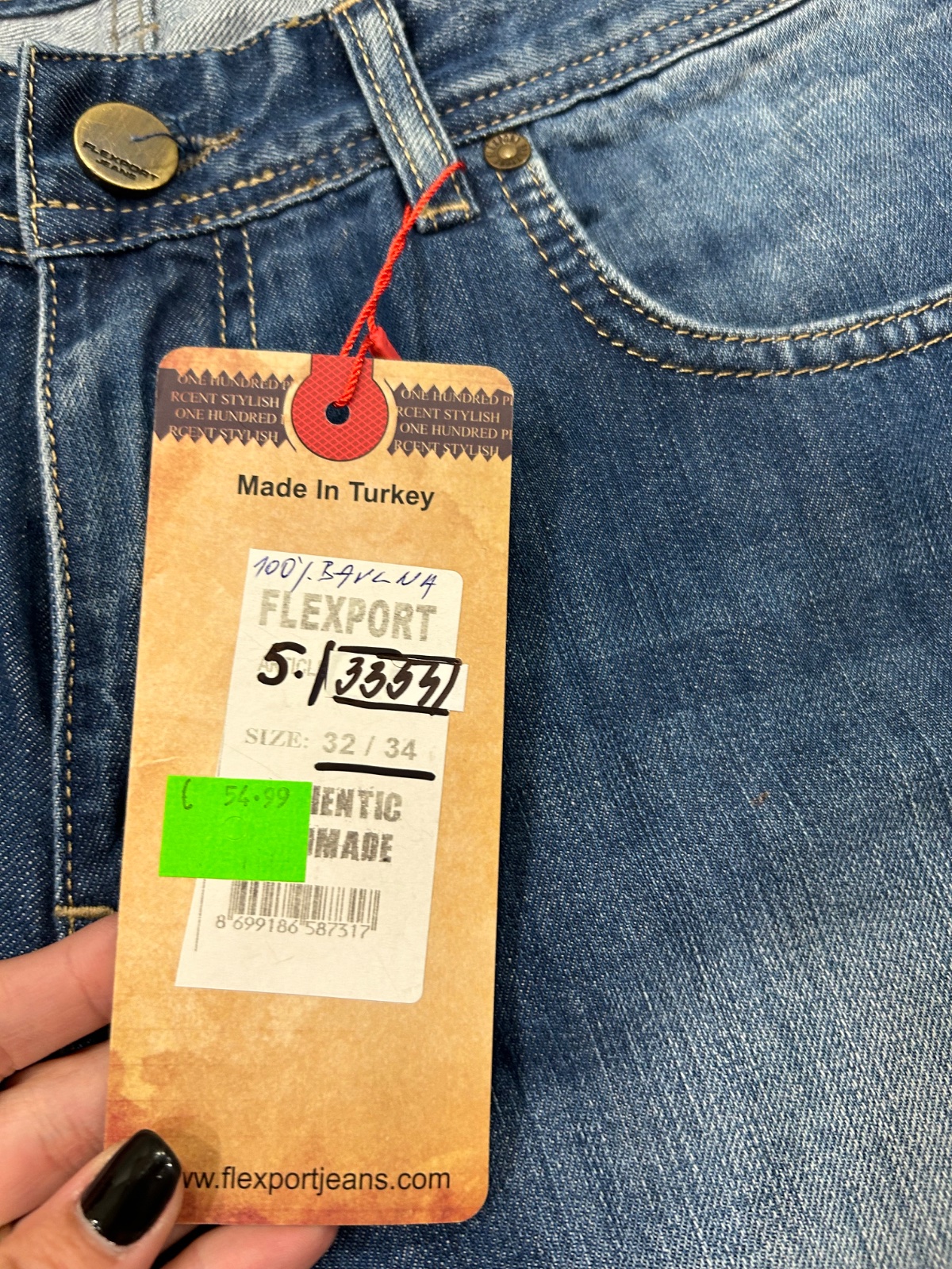 FLexport nove panske riflove nohavice,komplet s etiketou,PC 55 eur, material bavlna,velkost W32 L 34,dlzka je 110cm, sirka v pase je cca 42x2cm,predny sed je 26cm a zadny je 35cm,sirka stehna pod rozkrokom je 31x2cm,sirka dole je 20cm