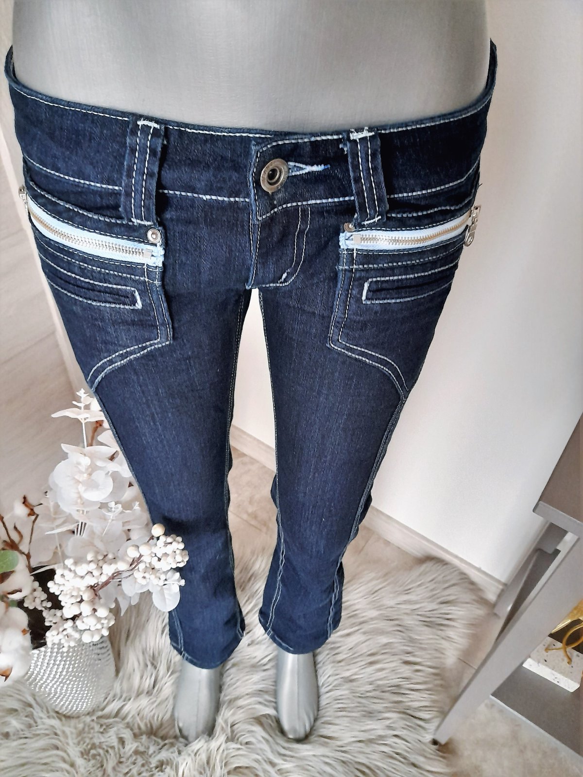 nevymieňam!!super krásne rifle,asi raz oblečené,pc-30 eur..úplne bez poškodení,sú hrubšie,málinko elastické,s peknými zipsovými detailami,dĺžka 7cm,pás 2 x 39cm,boky 2x 43cm,predný sed 19cm,zadný sed 26cm..kuk aj na iné moje inzeráty