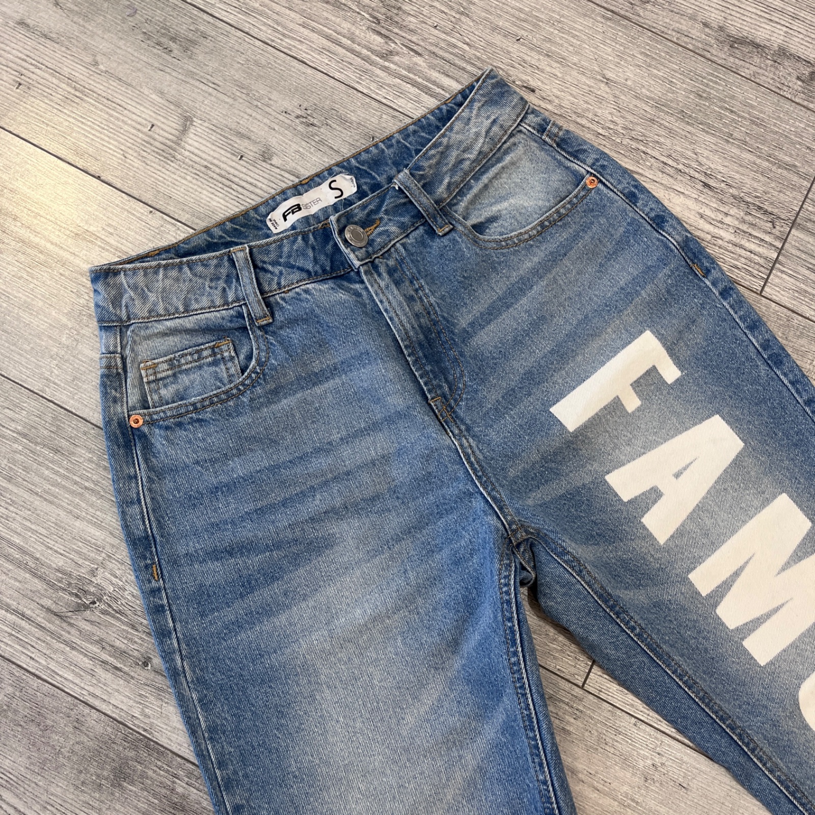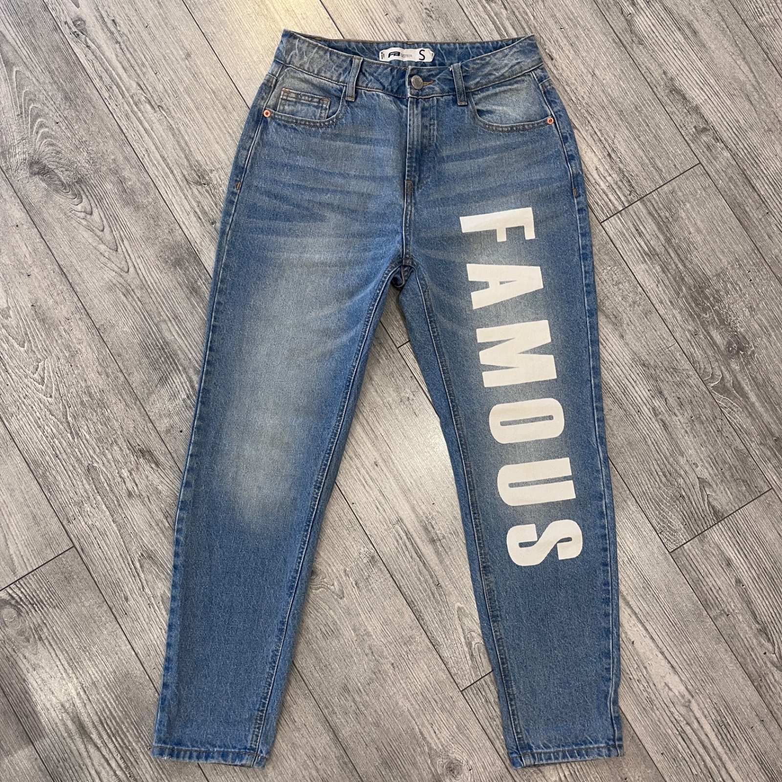 Rifle momjeans s nápisom