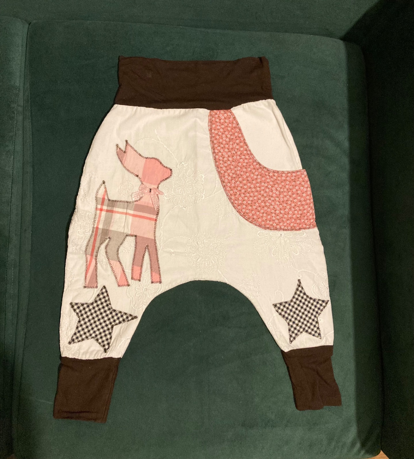 Posuniem krásne harémove nohavice. Veľkosť asi 80. Kupované tu ako handmade, dcérkou ale nikdy nenosené. Sú vo veľmi dobrom stave. V prípade záujmu premeriam.