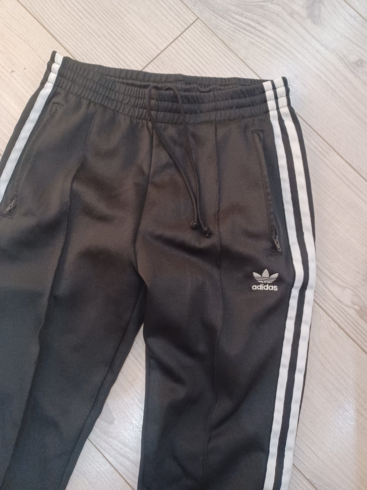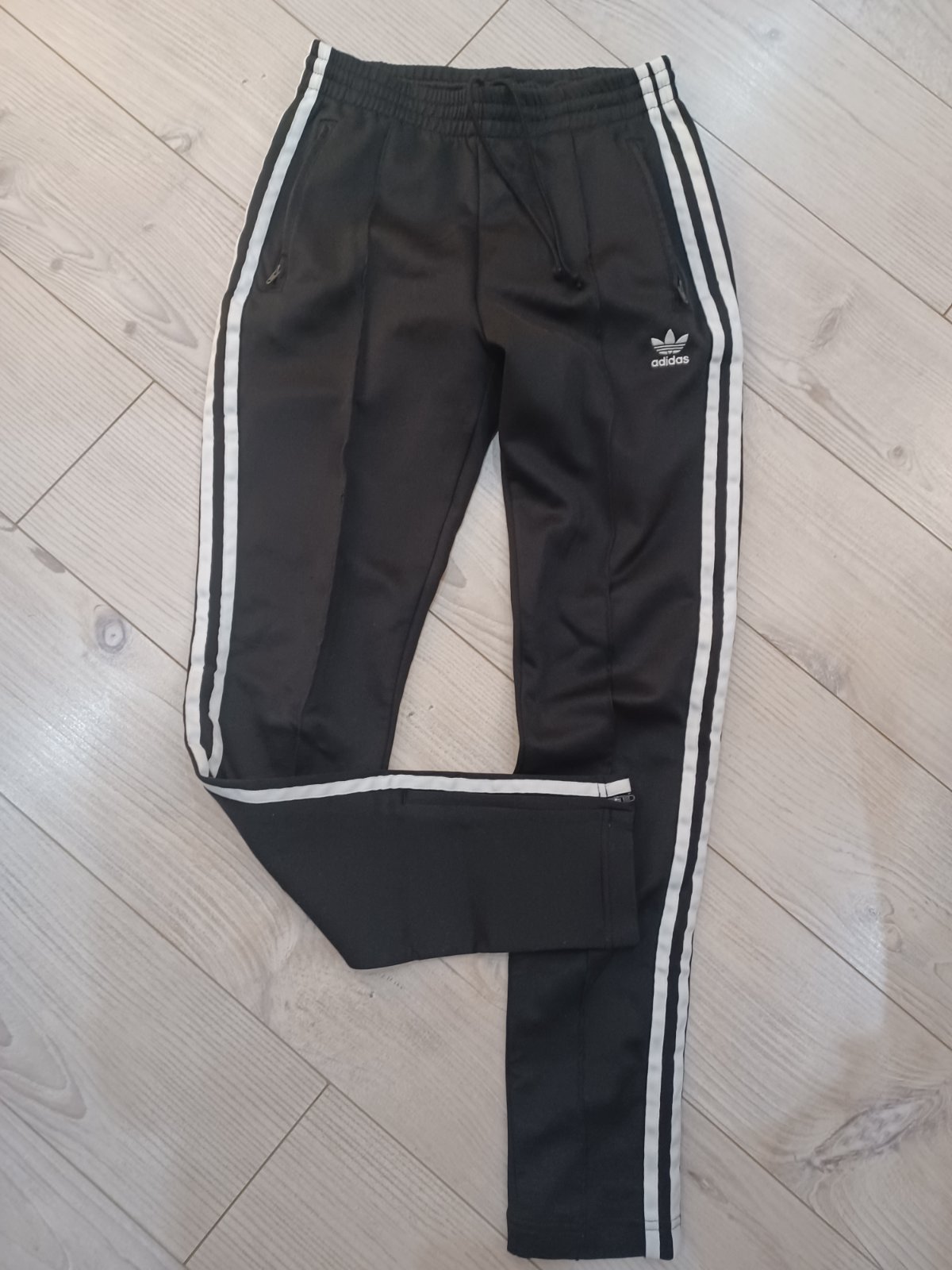 Krásne tepláky v páse na sťahovanie, dve predné vrecká na zips,na spodu nohavice sú tiež zipsy.