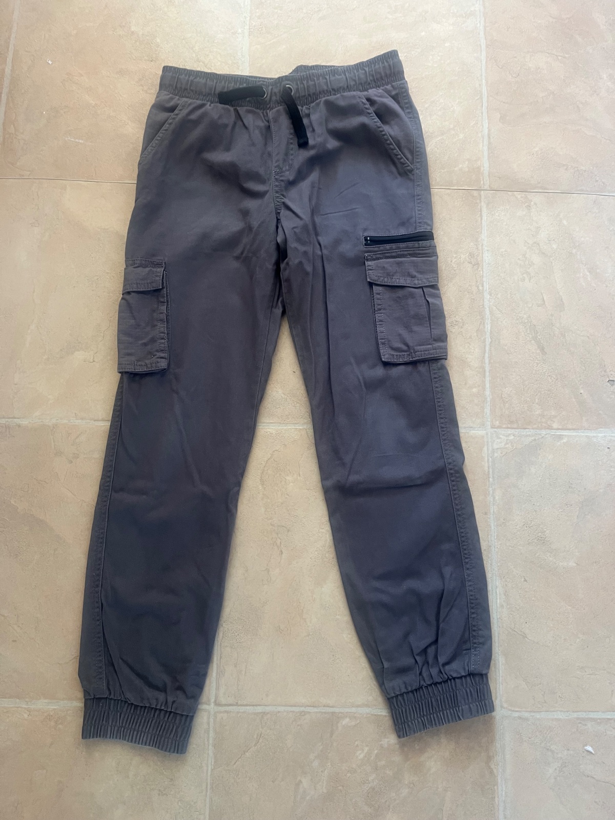 Tenké nohavice s vreckami po bokoch . Pás na gumu. Nedá sa regulovať . Šírka v páse 35. Dĺžka od pása 86. Bez poškodenia ako nové .