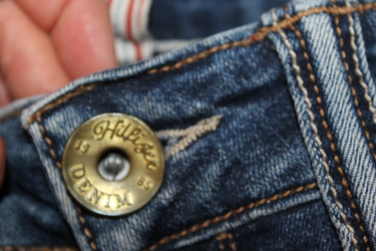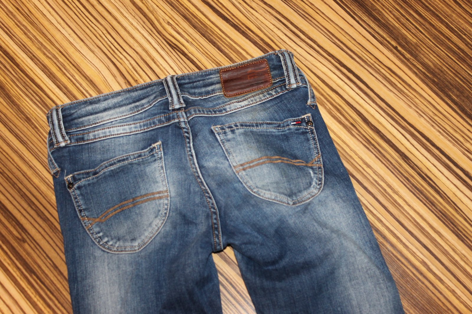 Málo nosené, super stav, bez poškodení. Elastické. Veľ. 27/34, RO: pás 2x 35-39 cm, stehno 2x 21-25 cm, boky cca 2x 42 cm, cel. dl. 100/84 cm vnútorná dĺžka. Predný sed 19/31 zadný sed. Váha 507 g.