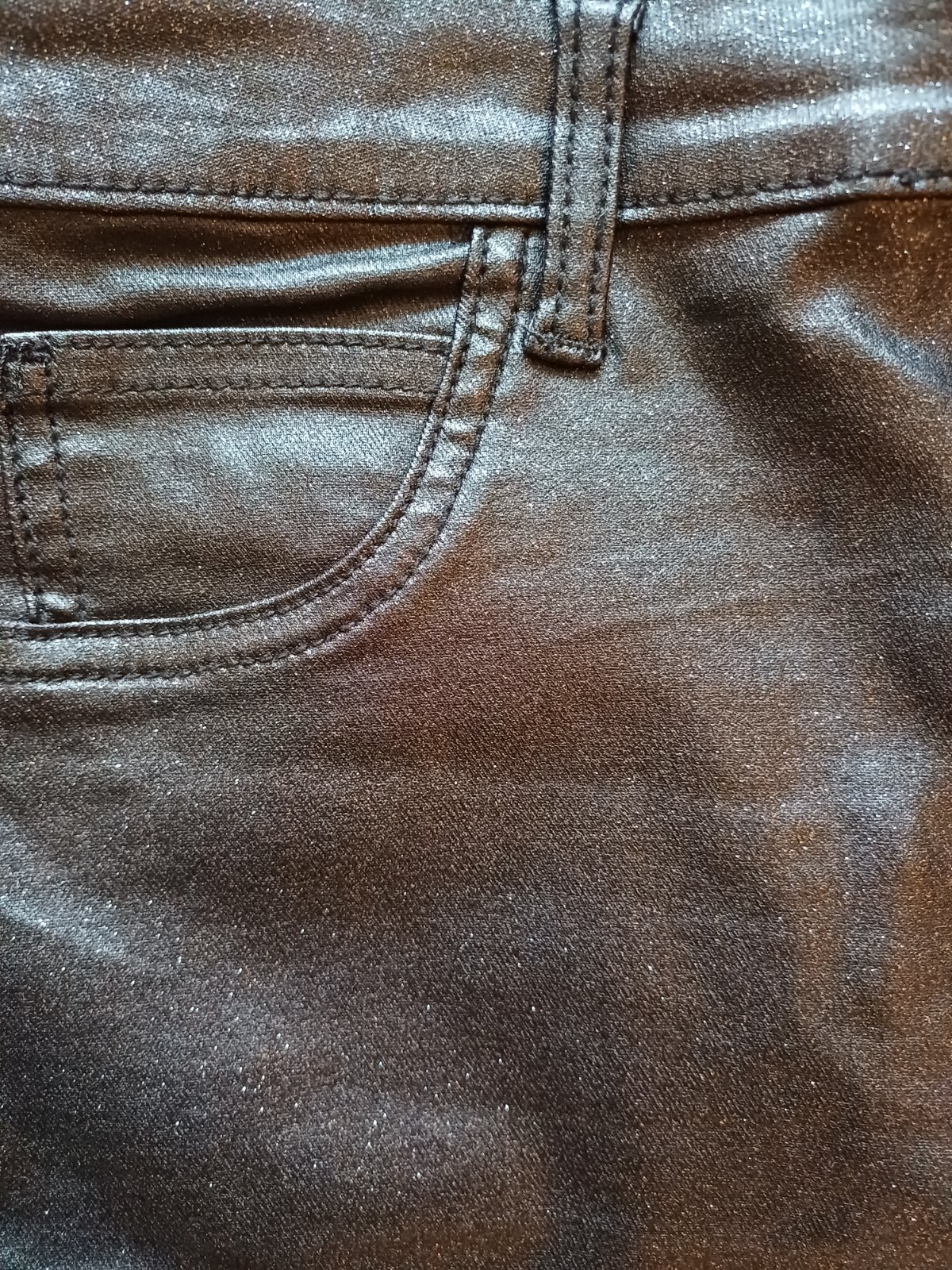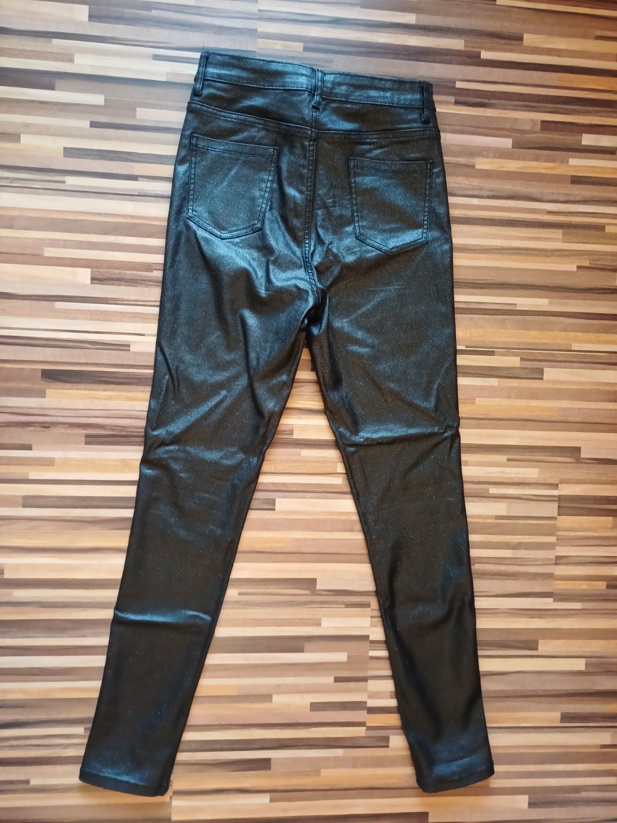 Trblietavé rifle zn. Fisherfield, veľ. 40. Elastické, pohodlné, v páse zapínanie na gombík + zips, 1 predné vrecko + 2 zadné, pútka na opasok. Rozmery: postranná dĺžka 102 cm, od rozkroku dolu 76 cm, šírka v páse 38 cm.