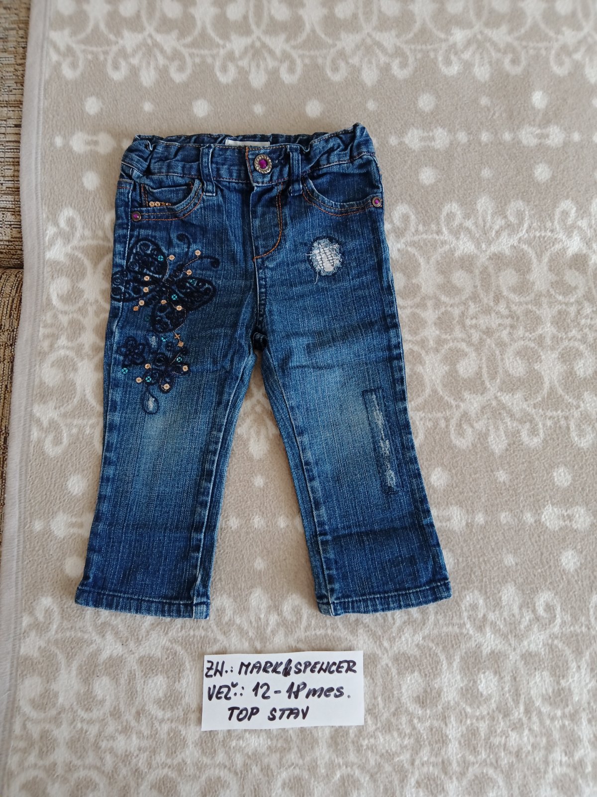 Dievčenské rifle zn.Marks&Spencer veľ.12-18 mes.,skôr 12mes., výborný stav,cena 3eur
