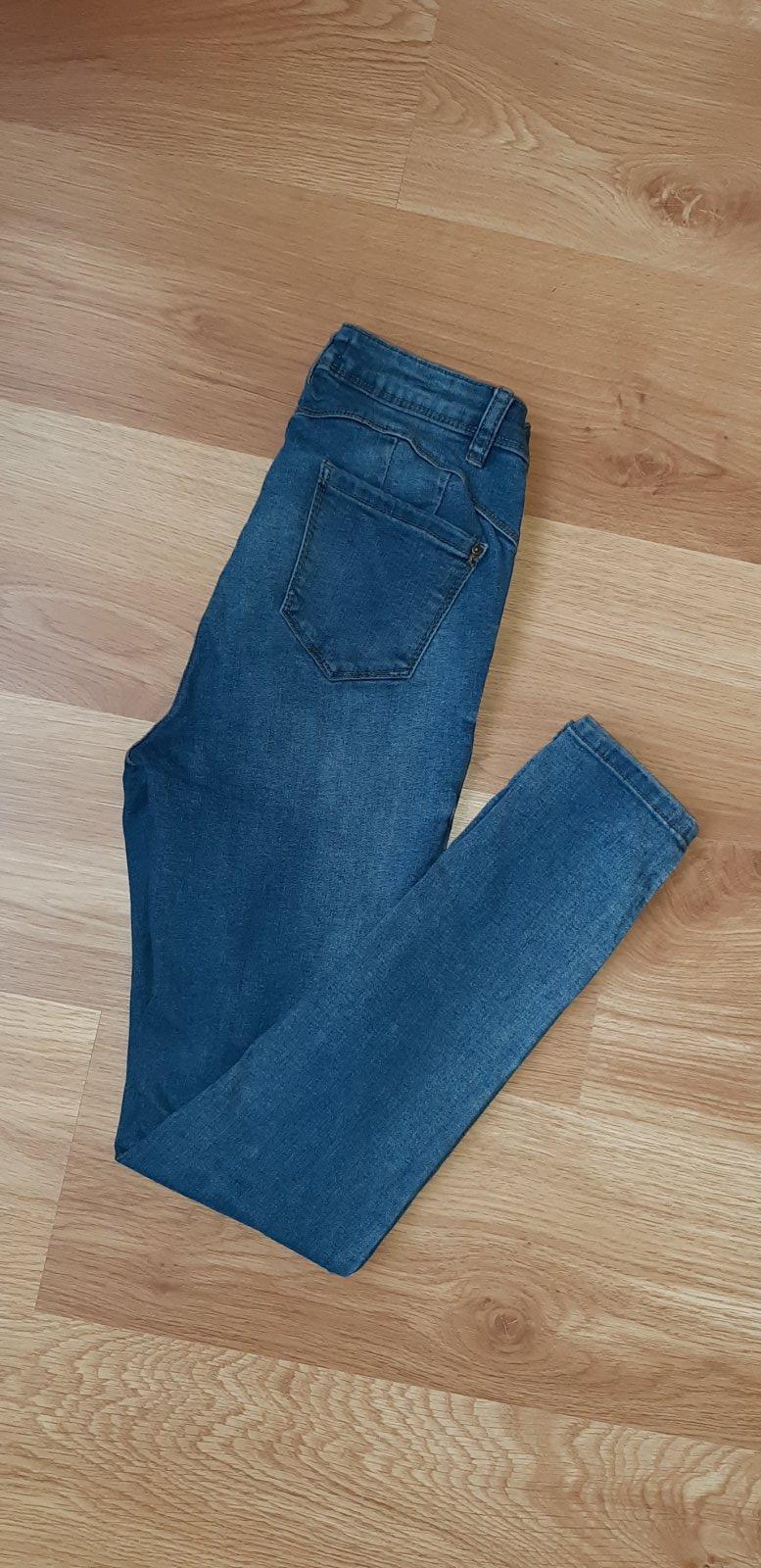 Elastické rifle s push-up efektom, vyšší sed, bez poškodení, len treba vymeniť zips.