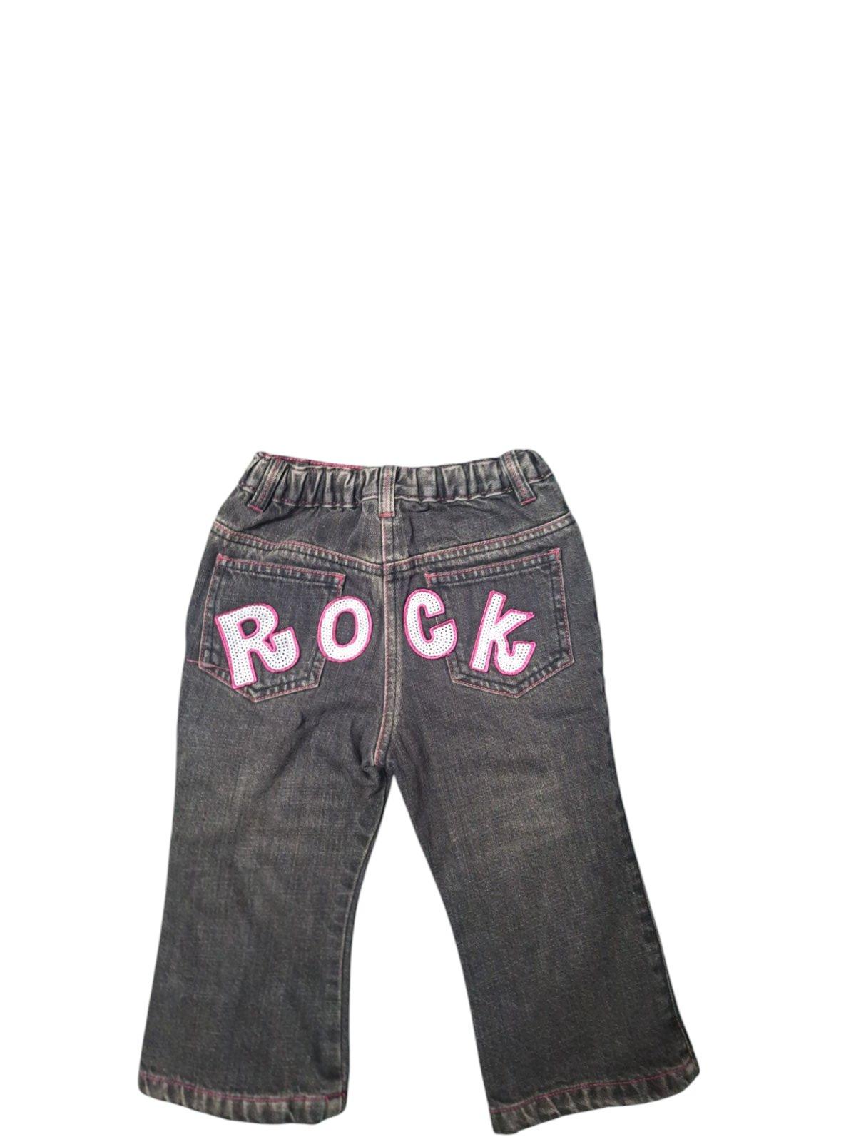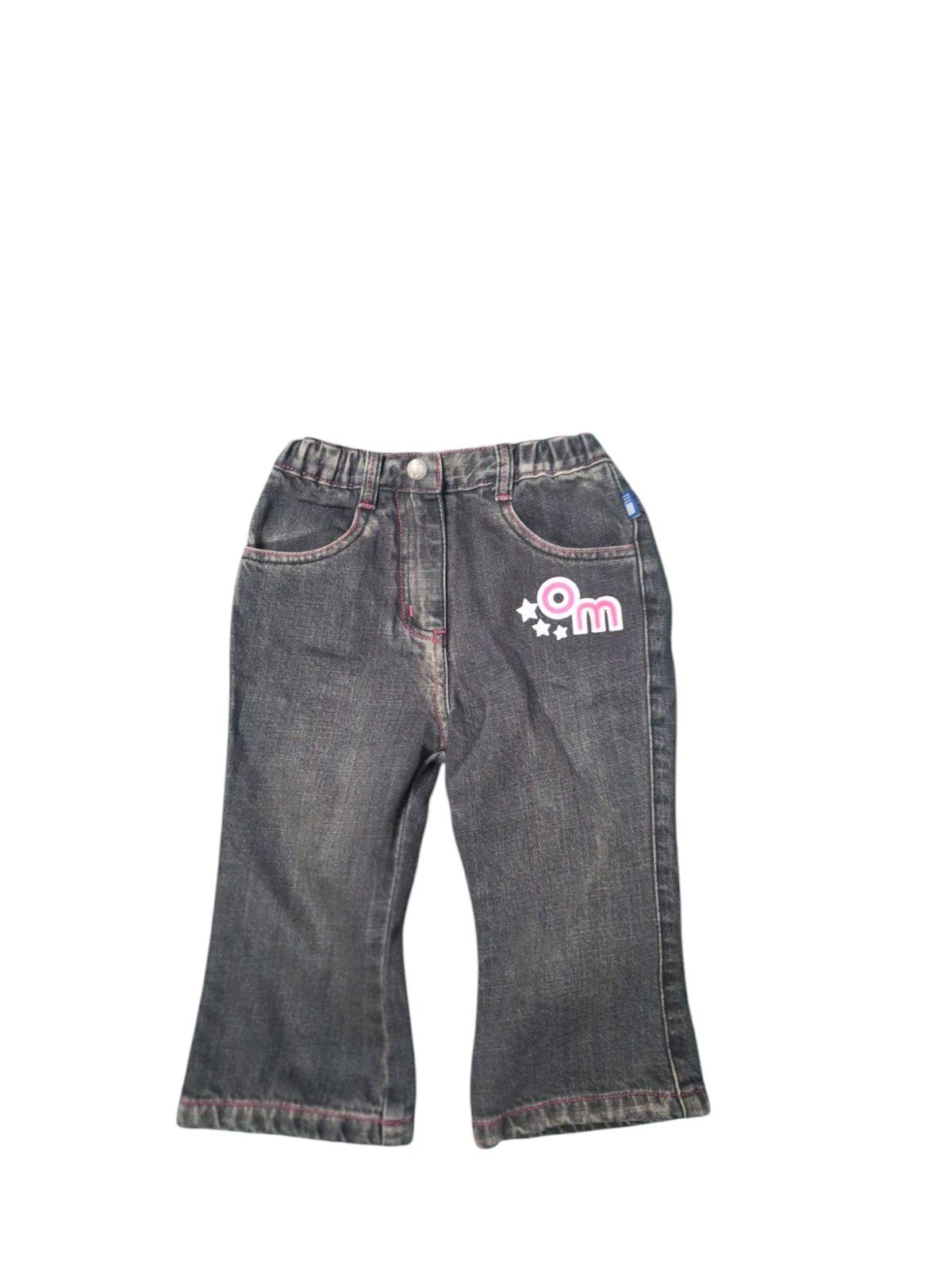 Dievčenské značkové rifle. Zapínanie je vpredu na zips a cvok. V páse je guma. Dĺžka je 50cm, obvod pása v kľude je 48cm,natiahnuté 54cm. kód 771
