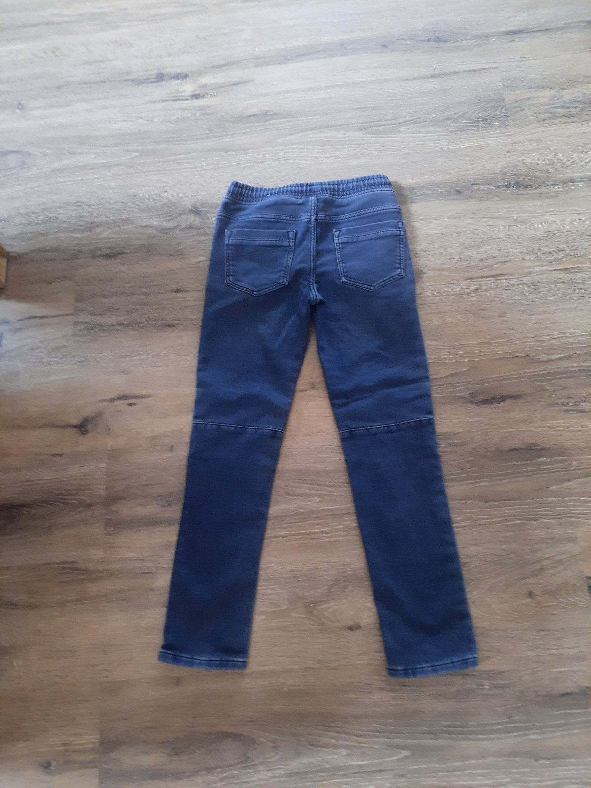 Pekné chlapčenské rifle tmavo modrej až čiernej farby - pevnejšia rifľovina, rovný strih, v páse mierna gumička. Nosené, majú dve mini chybičky krásy - akoby zatiahnutia, nie dierky - podľa mňa vôb...