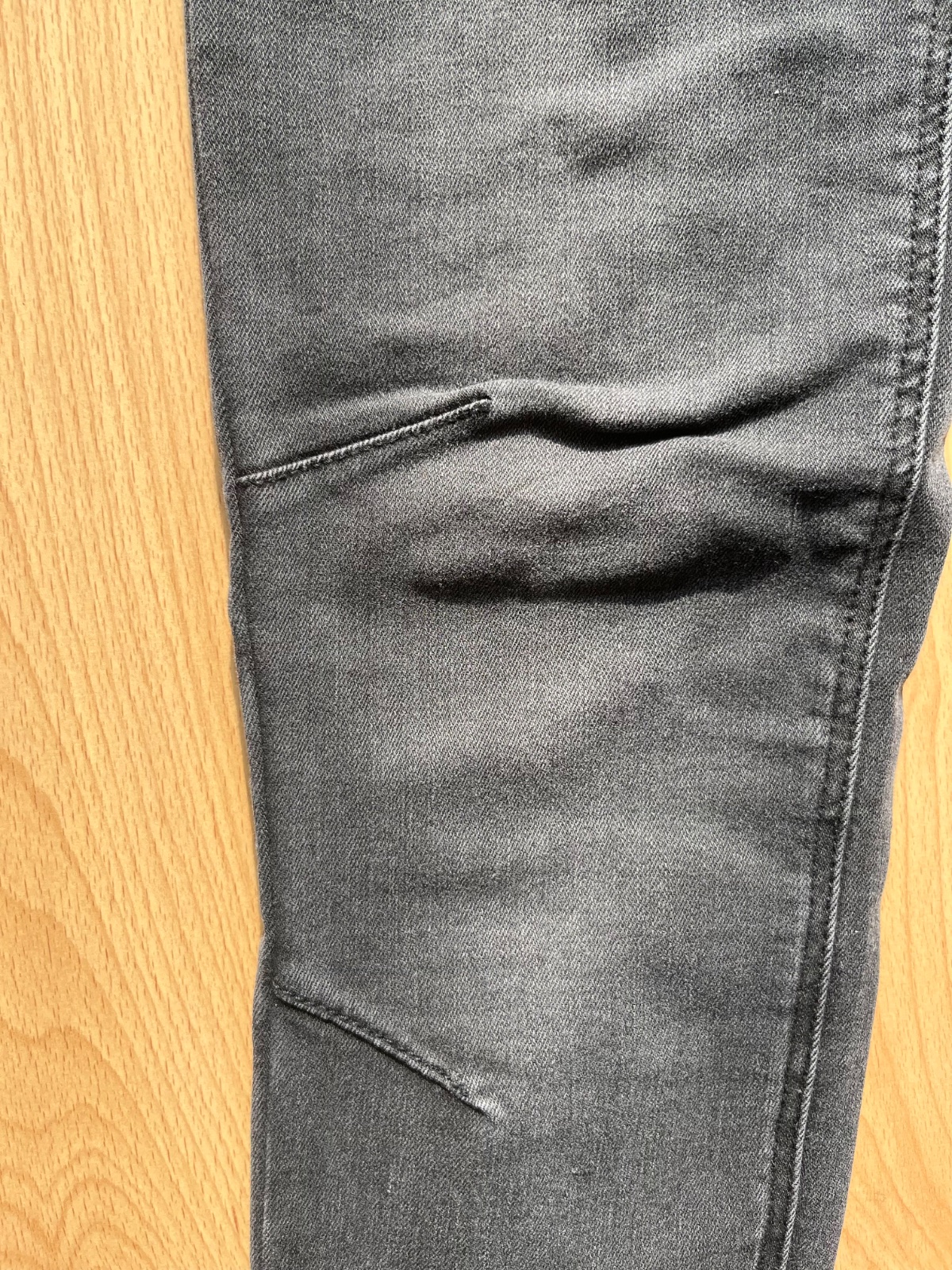 Málo nosené úzke rifle s nízkym sedom, prešité na kolenách.