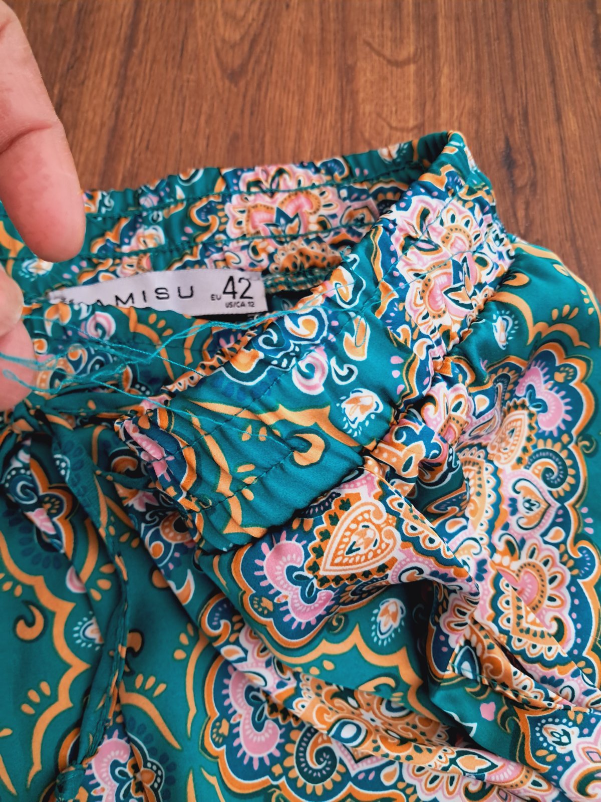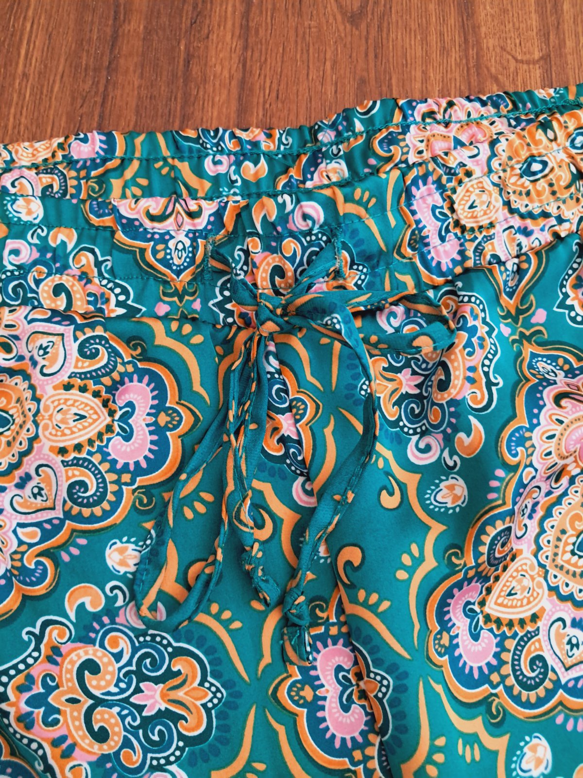 Ľahký materiál. V páse gumka a šnúrka. Nitka povolená viď. foto.
