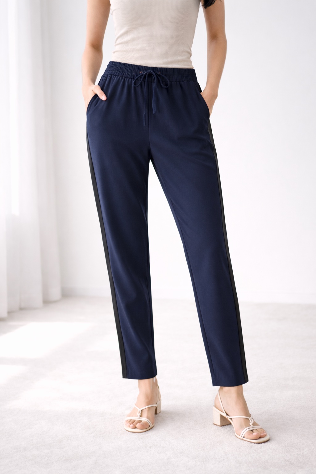 navy elegant trousers chiffon pants women elastic waist office casual comfortable