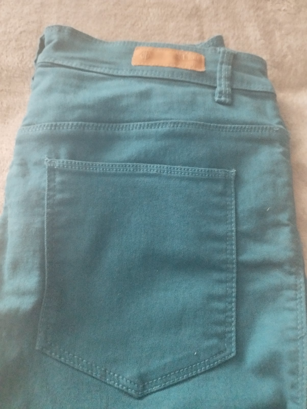 V peknom stave,málo nosené.Krásna tyrkysová farba,kúpu určite neoľutujete.Mne bohužiaľ malé.Písaná veľkosť M,ale podľa mňa sú menšie.